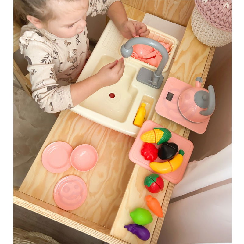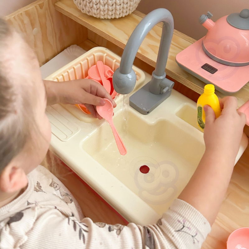 Zanurz się w świat kulinarnych przygód z zlewozmywakiem i kuchenką 2w1 od renomowanej marki WOOPIE! Ta interaktywna zabawka pozwoli maluchom poczuć się jak prawdziwi kucharze i pomocnicy w domowych obowiązkach. Dzięki ruchomym elementom, takim jak kurek z prawdziwą wodą, dzieci mogą gotować, zmywać naczynia i kroić owoce i warzywa, które łączą się rzepem. Zestaw zawiera wszystko, czego potrzeba do udanej zabawy: talerzyki, miseczki, deskę do krojenia, czajnik, płytkę indukcyjną, kubki, sztućce, kubeczki na kawę, produkty spożywcze, płyn do mycia naczyń oraz suszarkę z zlewem. Zabawka rozwija umiejętności odpowiedzialności, kreatywności, wyobraźni i samodzielności u dzieci powyżej 3 roku życia. Pozwól swojemu dziecku czerpać radość z nauki poprzez interaktywną i edukacyjną zabawę!