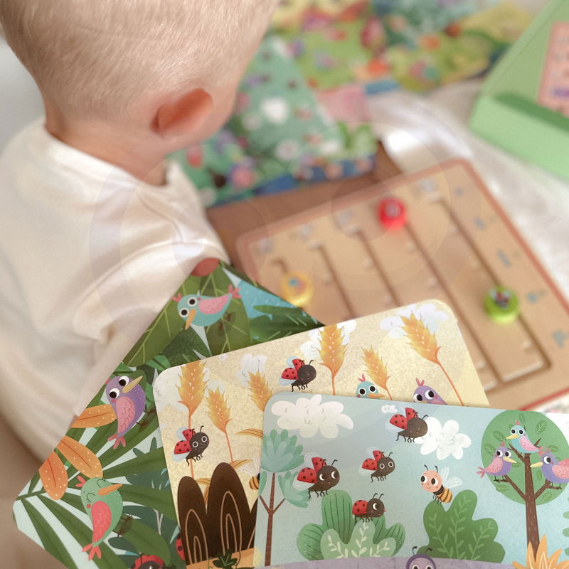 przedstawia drewnianą grę edukacyjną, która nie tylko bawi, ale także uczy liczenia w przyjemny sposób. Zestaw zawiera drewnianą tabliczkę do zaznaczania liczb oraz 20 kart z motywem leśnym, na których znajdują się urocze zwierzątka jak biedroneczki, ptaszek, ślimaczek, gąsieniczki i pszczołki. Dzięki tej grze dziecko może rozwijać spostrzegawczość, uczyć się liczenia, nazw zwierząt oraz angielskich słówek. Dodatkowo, poprawia koncentrację i umiejętność rozpoznawania obrazków. Produkt jest przeznaczony dla dzieci od 3 roku życia i wykonany z najwyższej jakości, ekologicznych materiałów, co zapewnia bezpieczeństwo zarówno dla dzieci, jak i środowiska. Gra Tooky Toy to gwarancja wysokiej jakości, kreatywnej zabawy oraz edukacyjnej wartości dla najmłodszych.