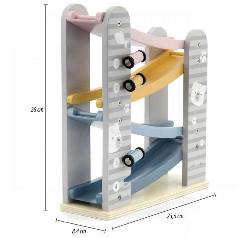 Zestaw "Tor Wyścigowy" to niezwykła zabawka dla młodych pasjonatów wyścigów. Dzięki unikalnemu designowi i solidnej konstrukcji, idealnie uzupełni każdy dziecięcy pokój. Produkt zapewnia nie tylko wiele godzin zabawy, ale także rozwija umiejętności niezbędne w życiu codziennym. Każdy z 4 kolorowych samochodzików ma swój własny numer, a tor wyposażony jest w specjalne miejsce do przechowywania pojazdów. Całość wykonana jest z drewna lakierowanego i pomalowana nietoksycznymi farbami w pastelowych barwach, co przyciąga uwagę i zapewnia bezpieczną zabawę. Zestaw rozwija logiczne myślenie, motorykę, koordynację ręka-oko, umiejętność rywalizacji oraz naukę liczb i kolorów. Dzięki tej zabawce, dzieci nie tylko świetnie się bawią, ale także uczą się wielu ważnych umiejętności. Gotowi do startu i emocjonujących wyścigów?