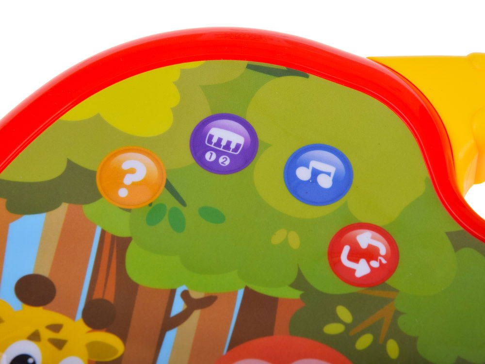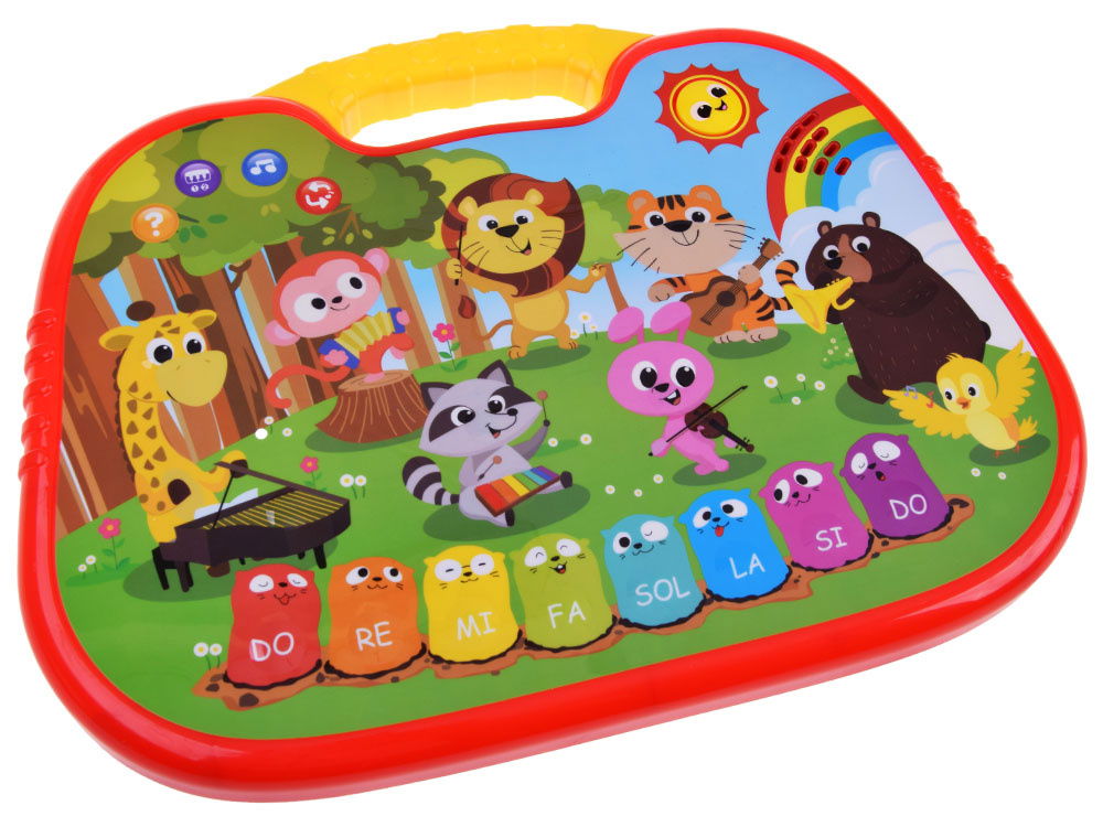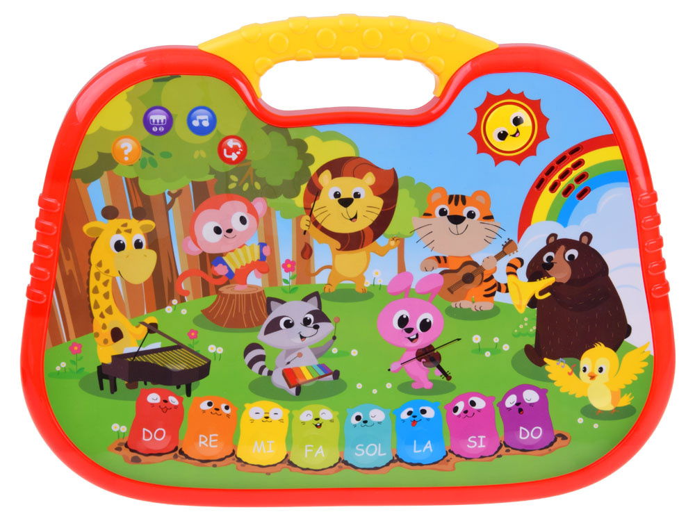 - Interaktywne pianinko z mini-quizem to zabawka, która zachwyci każdego małego muzykanta. Organki w pięknej kolorystyce z uroczą grafiką i poręcznym uchwytem zapewnią długie godziny rozrywki. Dotykowe guziki działają płynnie, ułatwiając obsługę nawet najmłodszym dzieciom. Pod przyciskiem z pytajnikiem kryje się mini-quiz, który sprawi wiele frajdy. Dziecko może odpowiadać na pytania i szukać odpowiednich ilustracji. Pianinko oferuje różne tryby grania, w tym możliwość samodzielnego komponowania melodii oraz wygrywania znanych utworów. Dodatkowo, zabawka umożliwia odtwarzanie wgranych melodii, pozwalając maluchowi tańczyć lub śpiewać w rytm muzyki. Podczas zabawy dziecko poznaje nazwy zwierząt i instrumentów muzycznych, rozwija poczucie rytmu oraz ćwiczy motorykę małą i koordynację oko-ręka. Pianinko jest bezpieczne dla dzieci, nie ma ostrych krawędzi, posiada regulację głośności i miękkie, czułe przyciski. Dodatkowo, towarzyszy mu urocze światełko w uśmiechniętym słoneczku. Zasilane bateriami AA (brak w zestawie), pianinko ma wymiary około 35,5 cm x 26,5 cm x 2,5 cm. Zabawka jest zapakowana w kolorowe pudełko, idealne na prezent. Dzięki interaktywnemu pianinku dziecko rozwija swoje umiejętności muzyczne i poznaje świat dźwięków w sposób atrakcyjny i edukacyjny.