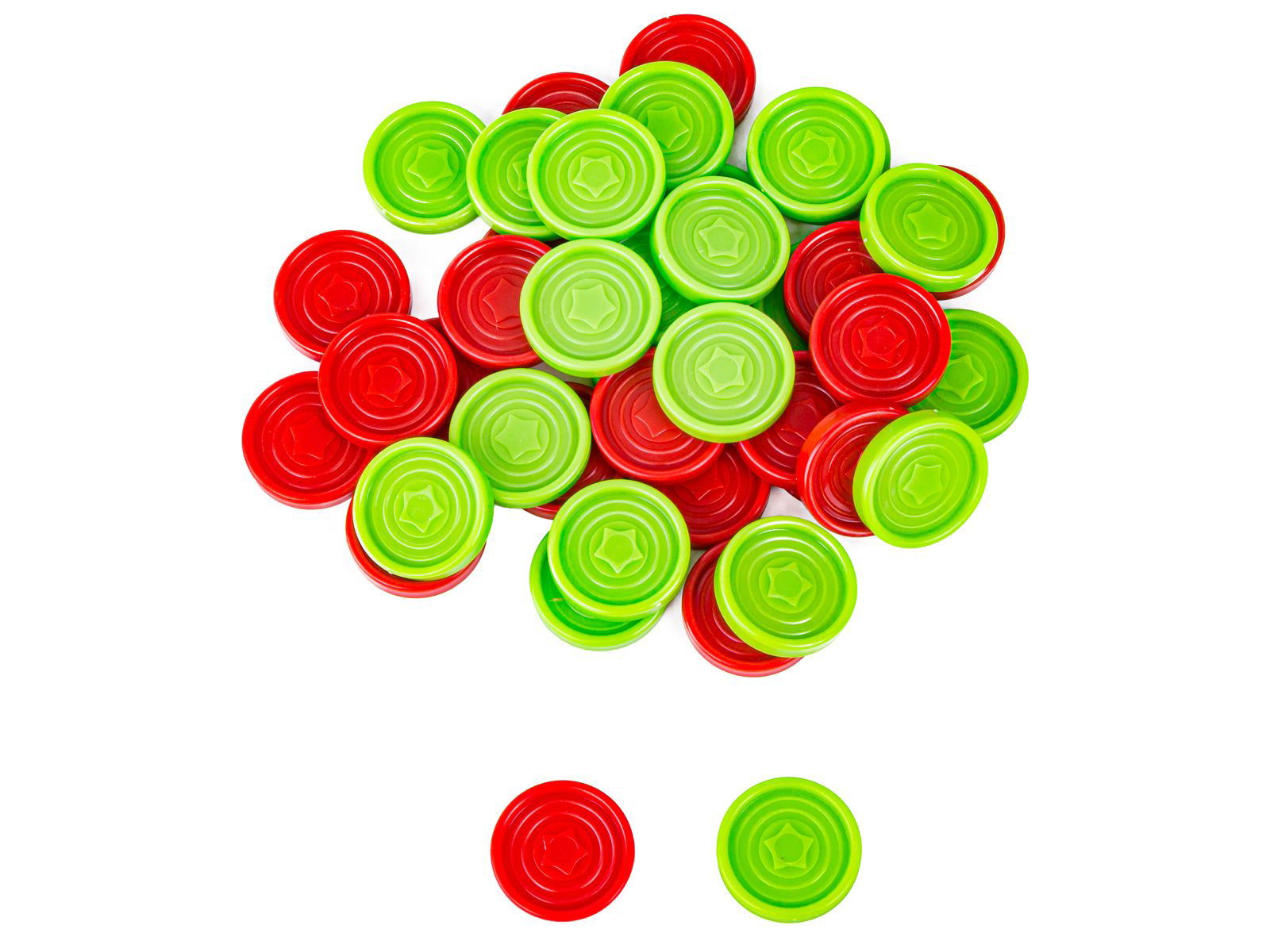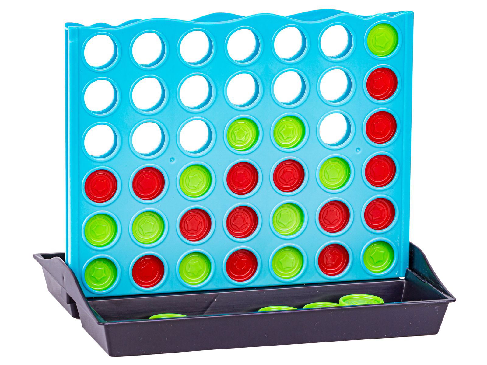 W zestawie znajdziesz: 1 planszę z podstawką, 42 żetony w kolorach zielonym i czerwonym oraz oryginalne opakowanie.