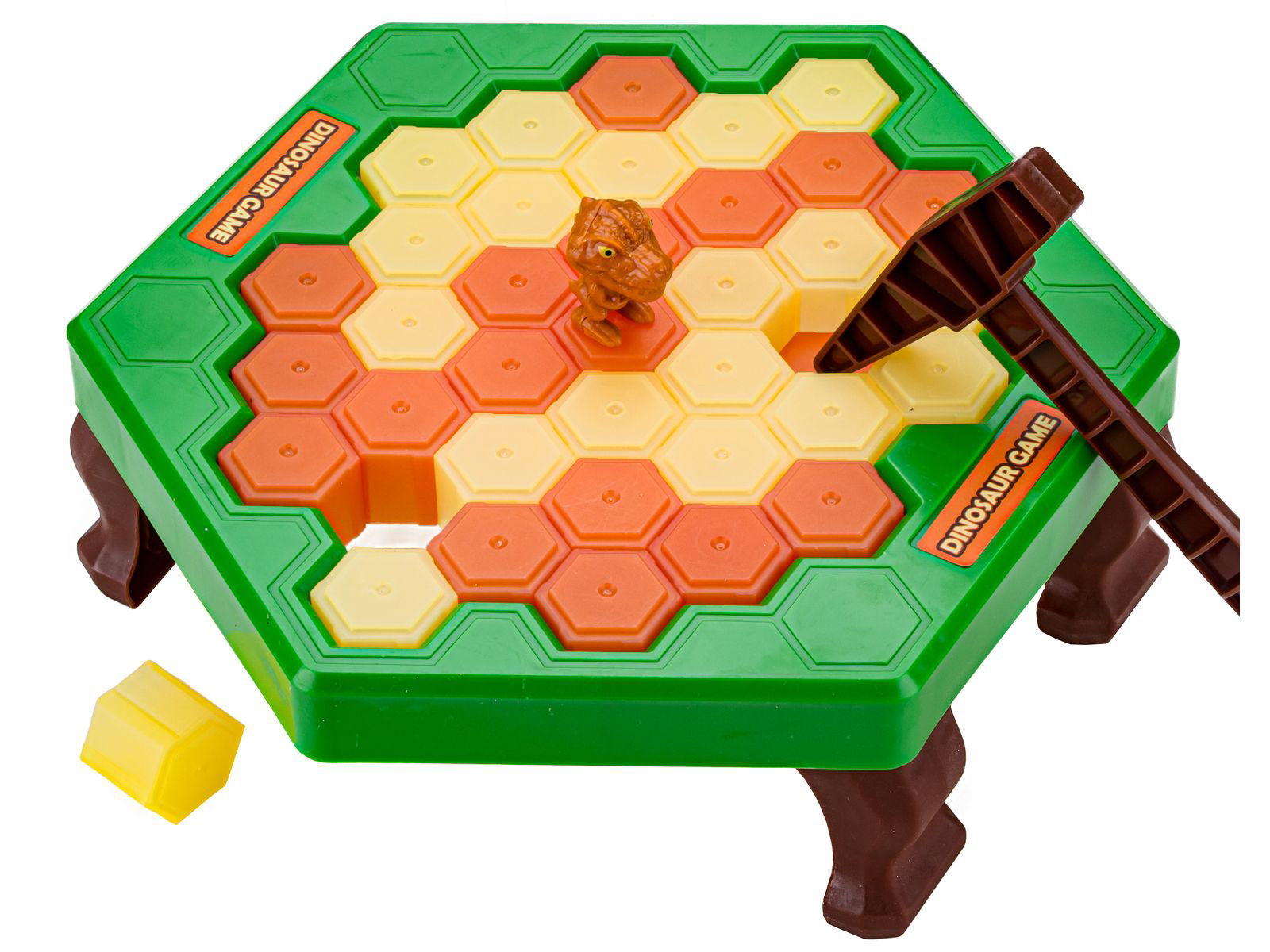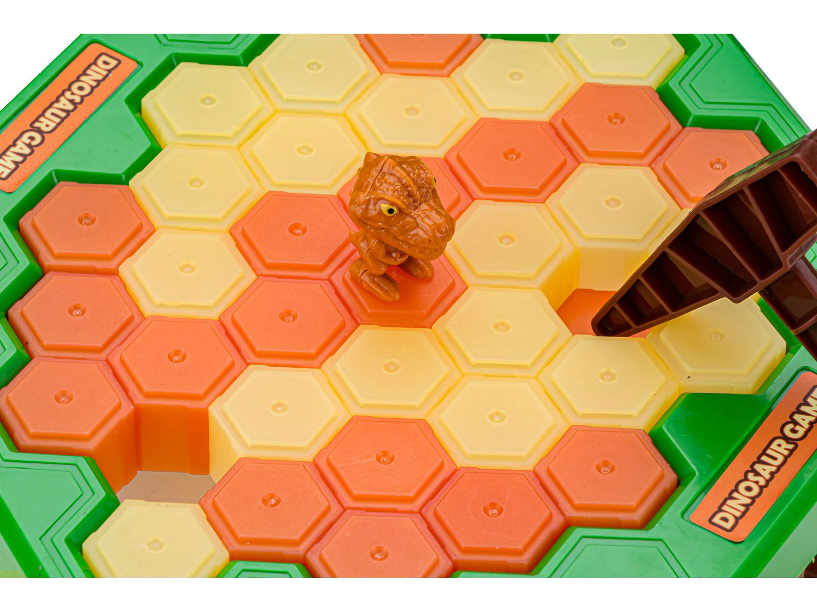 Gra Zręcznościowa URATUJ DINOZAURA to niezwykła zabawa, która wciągnie Cię od pierwszego rzutu oka! Przygotuj się na emocjonującą rywalizację, podczas której będziesz musiał zachować zimną krew. Wystarczy, że postawisz dinozaura na środku, a następnie zakręcisz kołem, które wskaże, którą bryłkę ziemi musisz zrzucić młotkiem. Uważaj, aby nie strącić dinozaura w przepaść! Zawartość zestawu to solidna podstawa z nóżkami, aż 19 beżowych i 19 pomarańczowych bryłek ziemi, koło do losowania, figurka dinozaura, 2 młotki oraz oryginalne opakowanie. Gra przeznaczona jest dla dzieci powyżej 3. roku życia i może być rozgrywana przez 2-4 graczy. Podstawa ma wymiary 19,5 x 19,5 x 7,5 cm, natomiast dinozaur mierzy około 3 x 2,5 x 1,9 cm. Wymiary opakowania to 25,5 x 25,5 x 6 cm. Przygotuj się na niezapomniane chwile pełne ekscytującej rozrywki dzięki grze URATUJ DINOZAURA!