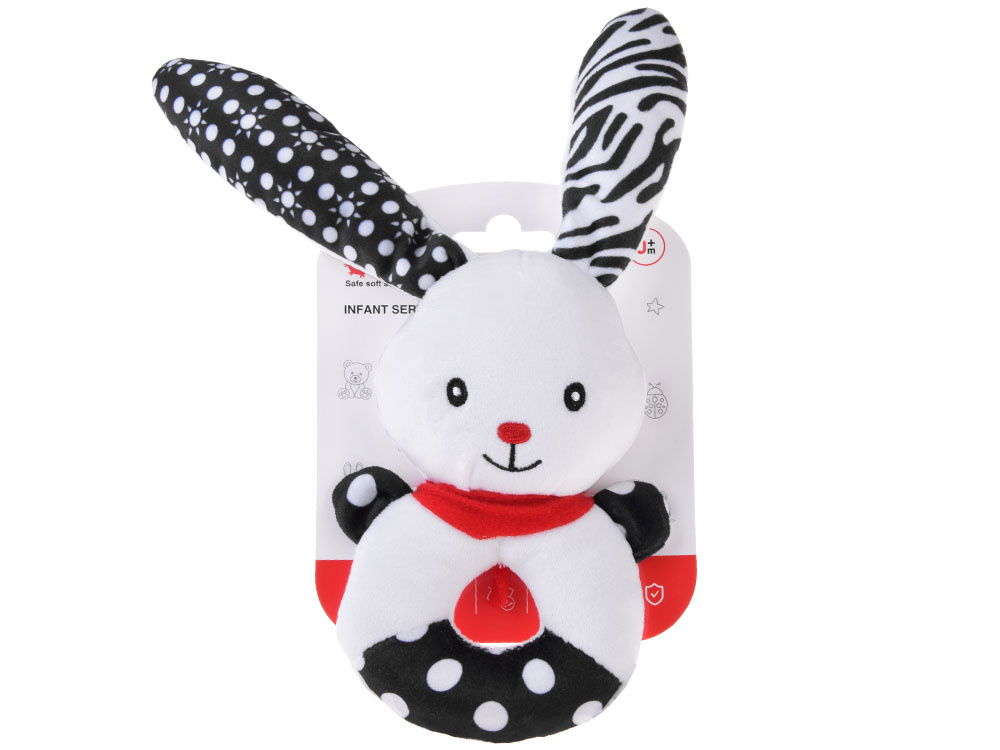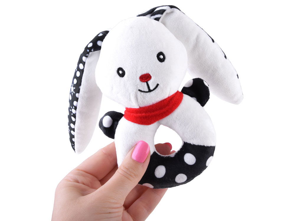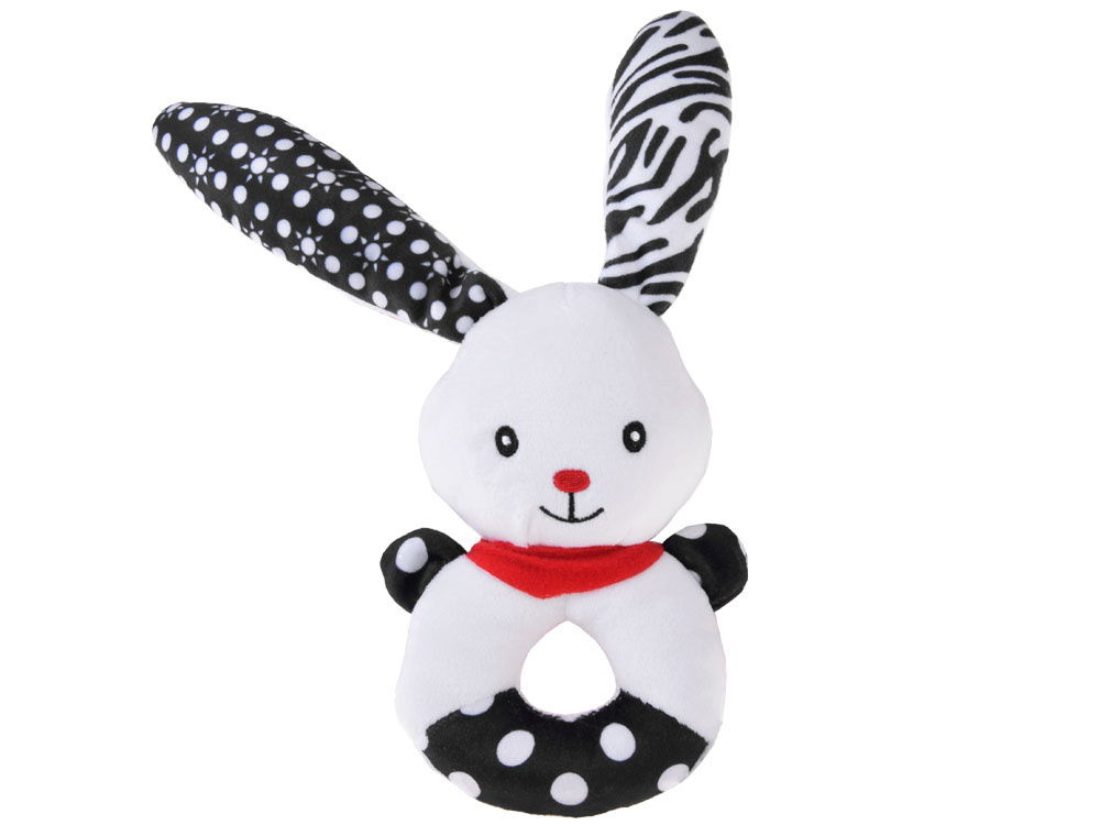 Miękka grzechotka kontrastowa dla niemowlaka – Króliczek