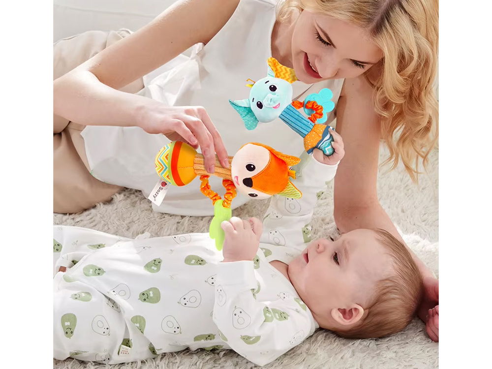 - Wprowadź swojego maluszka w fascynujący świat z naszą Wielozmysłową Grzechotką Zwierzątko! Ta urocza zabawka nie tylko zapewnia stymulację sensoryczną, ale także wspiera rozwój zmysłów Twojego dziecka od pierwszych dni życia. Dzięki delikatnemu dźwiękowi kuleczki-dzwoneczka wewnątrz grzechotki oraz szeleszczącym uszom, maluszek będzie miał niezapomniane doznania dźwiękowe. Dodatkowo, naciśnięcie "brzuszka" zabawki wywoła uśmiech na buzi każdego dziecka dzięki przyjemnemu piszczącemu dźwiękowi. Grzechotka wyposażona jest w silikonowy gryzak w kształcie łapki, który zapewnia ulgę podczas ząbkowania poprzez delikatne masowanie dziąseł. Cała zabawka jest miękka w dotyku, co sprawia, że idealnie nadaje się do przytulania i eksplorowania przez małe rączki. Nie zabrakło także elementów wspierających rozwój motoryki oraz koordynacji dziecka. Dodatkowo, kontrastowe kolory i różnorodne tekstury materiałów stymulują wzrok i zmysł dotyku malucha. Wymiary zabawki to 18 x 10 x 5 cm, co sprawia, że jest idealna do chwytania przez małe rączki dziecka. Wysoka jakość wykonania została połączona z dbałością o detale, tworząc trwały i estetyczny produkt. Wielozmysłowa Grzechotka Zwierzątko nie tylko bawi, ale także uczy i rozwija zmysły Twojego maluszka. To doskonały towarzysz odkrywania świata, który przynosi radość i korzyści roz