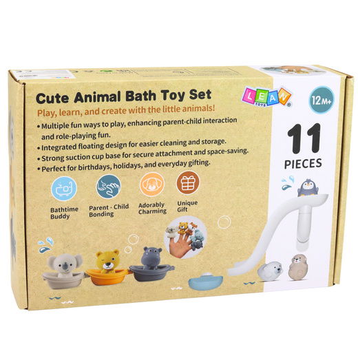 Odkryj magiczną przygodę podczas kąpieli z uroczym zestawem zabawek do wody! Ten zestaw zawiera 11 elementów, w tym kolorowe figurki zwierzątek pływające w łódeczkach oraz zjeżdżalnię wodną z przyssawką. Dzięki temu, Twoje dziecko rozwija koordynację ręka-oko i ciekawość, obserwując jak zwierzątka zjeżdżają prosto do wody. Zabawki są łatwe do chwytania, idealne dla małych rączek.