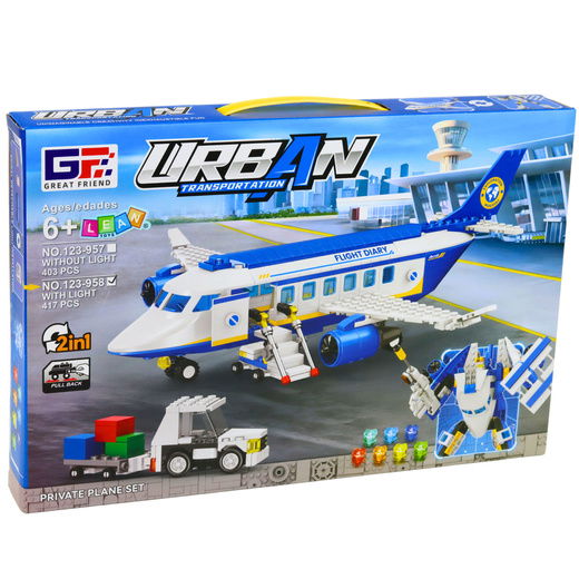 . Zawiera aż 417 elementów, umożliwiając budowę realistycznego samolotu pasażerskiego oraz uroczego robota. Model samolotu zachwyca liczba detali inspirowanych prawdziwymi maszynami, ruchomymi częściami i efektami świetlnymi zasilanymi dwiema bateriami LR41. Zabawa klockami rozwija zdolności manualne, logiczne myślenie i wyobraźnię przestrzenną dziecka. Zestaw, stabilny i łatwy w składaniu, zapewnia niezapomnianą zabawę oraz kreatywne spędzanie czasu dla dzieci od 6 roku życia. Pozwala na tworzenie niezwykłych konstrukcji i dostarcza wiele radości podczas wspólnych chwil w domu.