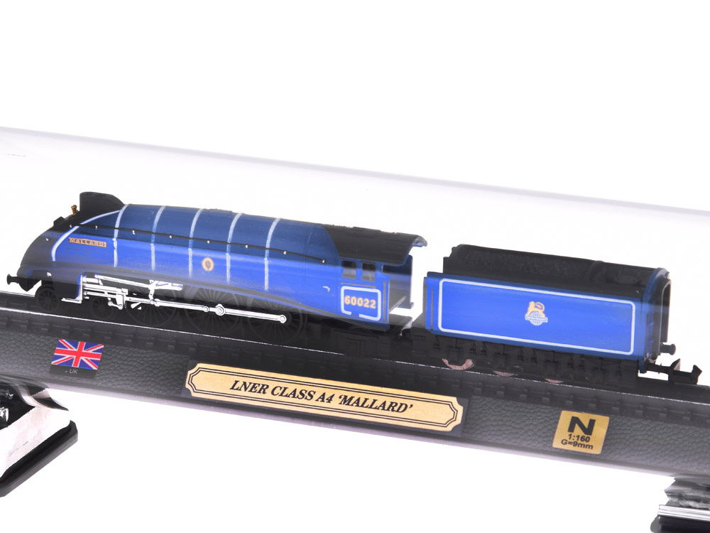 Lokomotywa to doskonale odwzorowany model angielskiej maszyny w skali 1:160. Umieszczony w eleganckiej tubie z antypoślizgowymi podstawkami, model prezentuje się wyjątkowo stylowo. Gruby, przezroczysty plastik tuby zapewnia ochronę przed uszkodzeniami i umożliwia szczegółowe oglądanie lokomotywy. Dodatkowo ozdobiony srebrnymi ramkami, model na tle torów jest wyjątkowo ekskluzywny. W zestawie znajduje się lokomotywa o wymiarach ok. 20,5 cm x 6 cm x 7,5 cm, umieszczona na podstawce z flagą kraju pochodzenia, złotą tabliczką z nazwą modelu i skalą wykonania. Dzięki precyzji wykonania, model LNER CLASS A4 "MALLARD" doskonale sprawdzi się jako ozdoba w pokoju, będąc jednocześnie idealnym prezentem dla kolekcjonerów i miłośników pojazdów szynowych. Odkryj szeroki wybór modeli kolekcjonerskich w sklepie Jokomisiada, w tym samochody i lokomotywy.