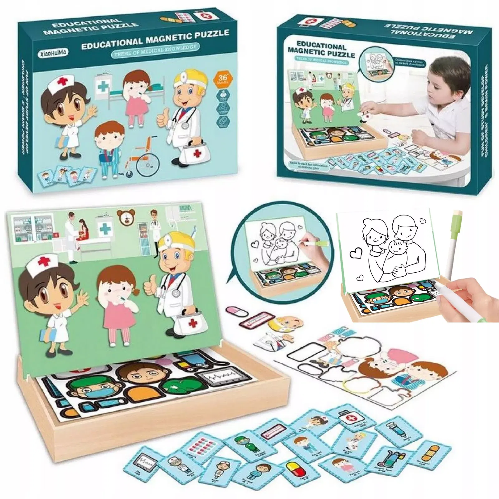 Dzięki dwustronnej konstrukcji, maluch może ćwiczyć precyzję, koordynację ręka-oko i zdolności plastyczne. Zestaw zawiera pisak suchościeralny, 47 kolorowych magnesów oraz 8 dwustronnych kart tematycznych, zapewniając mnóstwo możliwości do zabawy i nauki. Wykonana z drewna tablica ma wymiary 27 x 20 x 4 cm, co sprawia, że jest idealna do użytku w domu. To doskonały prezent, który nie tylko bawi, ale także wspiera rozwój zdolności manualnych i umiejętności przed szkołą.