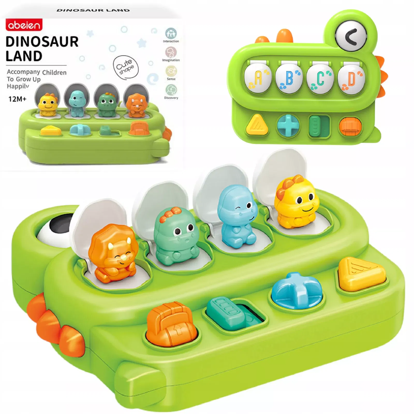 Dzieci będą zachwycone naciskaniem, przekręcaniem i przesuwaniem kolorowych przycisków, które sprawiają, że urocze dinozaury wyskakują z ukrycia, przynosząc mnóstwo radości.