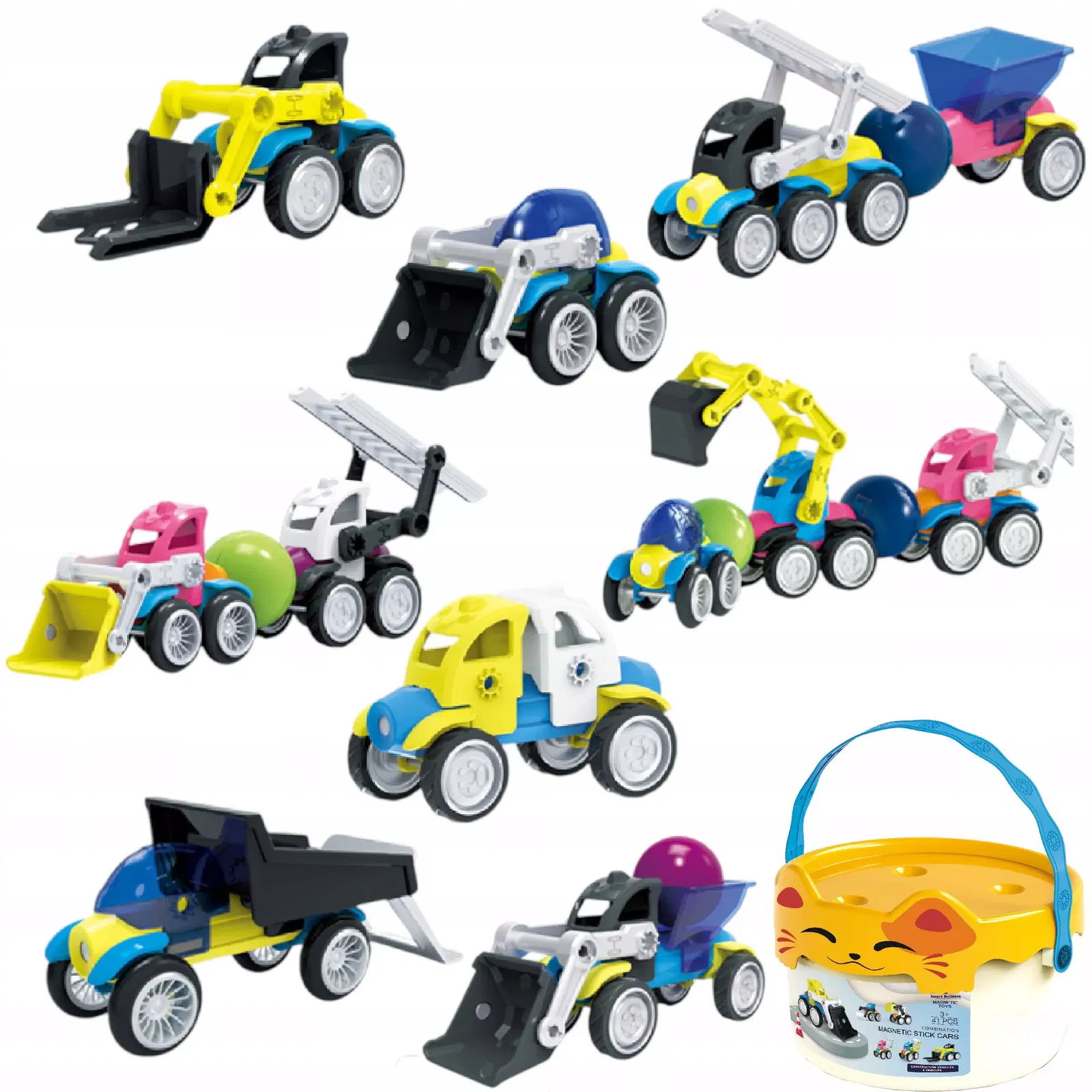 Zestaw magnetycznych klocków konstrukcyjnych to doskonała propozycja dla małych konstruktorów i miłośników motoryzacji. Dzięki innowacyjnej technologii magnetycznej, tworzenie pojazdów takich jak koparka, spychacz czy betoniarka staje się łatwe i bezpieczne. W zestawie znajduje się 6 różnych pojazdów, każdy składający się z 6 elementów, m.in. wózek widłowy, pojazd z drabiną czy walec.