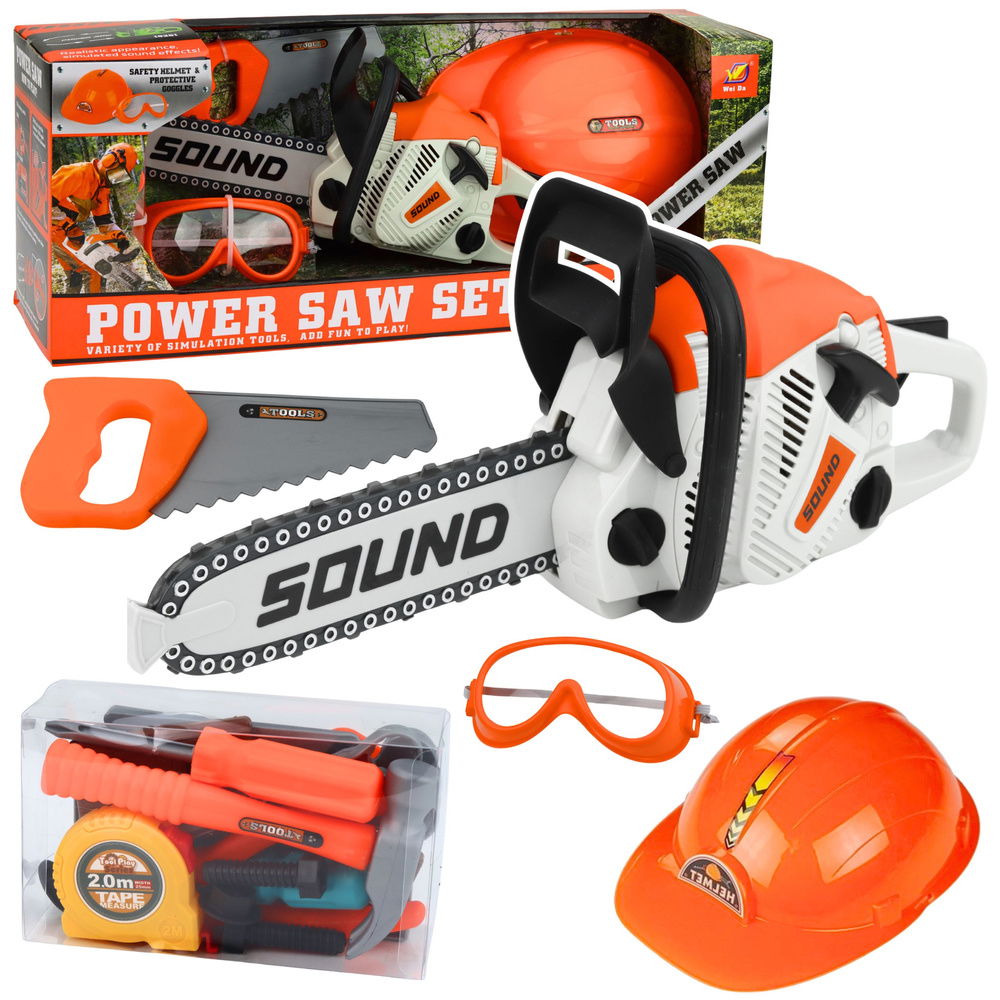 Odkryj nowy wymiar zabawy dla Twojego dziecka z zestawem narzędziowym dla dzieci! Ten kompletny zestaw zawiera wszystko, czego mały majsterkowicz potrzebuje do wielkich wyzwań. Zabawkowa piła łańcuchowa z realistycznymi dźwiękami i obracającym się ostrzem, kask ochronny, okulary, rękawice robocze, piła ręczna i zestaw narzędzi sprawią, że Twoje dziecko poczuje się jak prawdziwy majster. Dzięki elementom takim jak ręczny rozrusznik i przycisk uruchamiający, zabawa stanie się jeszcze bardziej ekscytująca. Wykonany z wysokiej jakości tworzywa sztucznego, zapewnia bezpieczną i wygodną zabawę. Ten zestaw nie tylko rozwija kreatywność i motorykę małą, ale także uczy podstawowych zasad bezpieczeństwa.