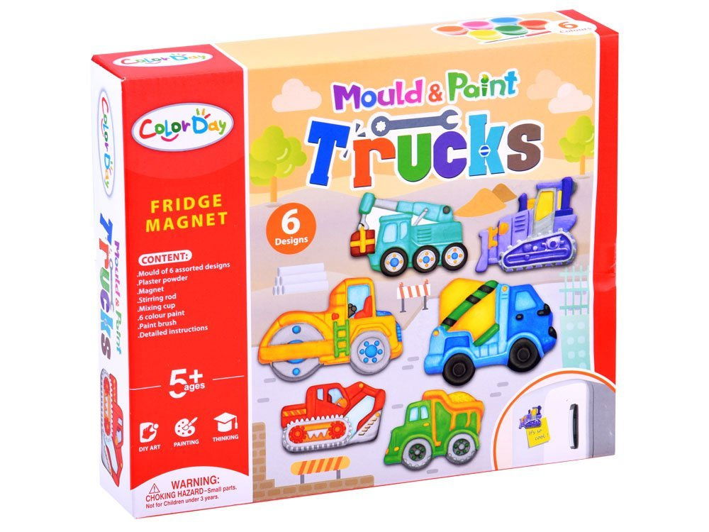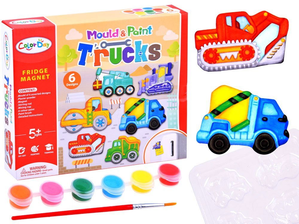 "Zrób to sam" - kreatywny zestaw magnesów to idealny prezent dla małych artystów, którzy kochają tworzyć i malować. Dzięki tej zabawce dzieci mogą stworzyć 6 magnesów w kształcie pojazdów budowlanych, takich jak spychacz, dźwig czy koparka. Zestaw zawiera woreczek z gipsem, miseczkę, mieszadełko, farbki, pędzelek, taśmę magnetyczną i instrukcję. To wspaniała okazja dla dzieci do wyrażenia swojej kreatywności i rozwijania zdolności manualnych. Produkt zapakowany jest w ładne, kolorowe opakowanie, idealne na prezent. Pozwól dziecku odkryć radość tworzenia własnych dzieł sztuki!