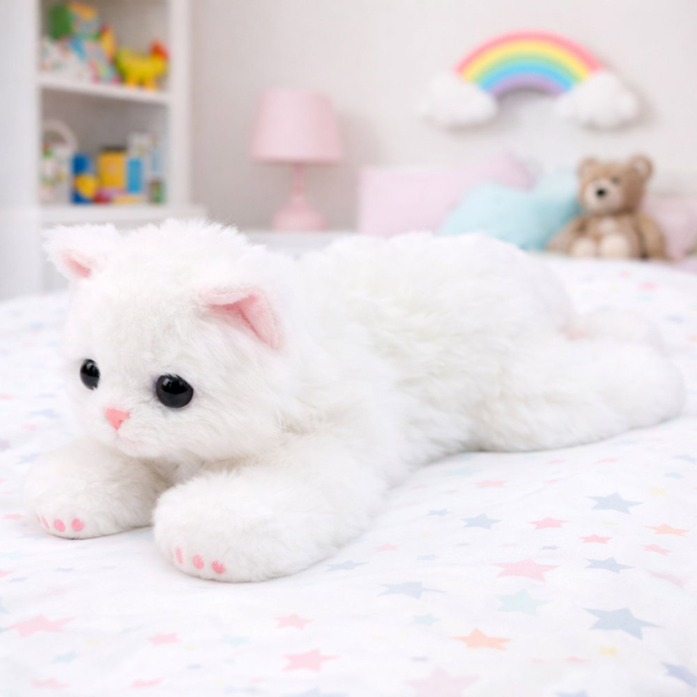 DLA DZIEIC MIĘKKI PLUSZAK BIAŁY KOTEK