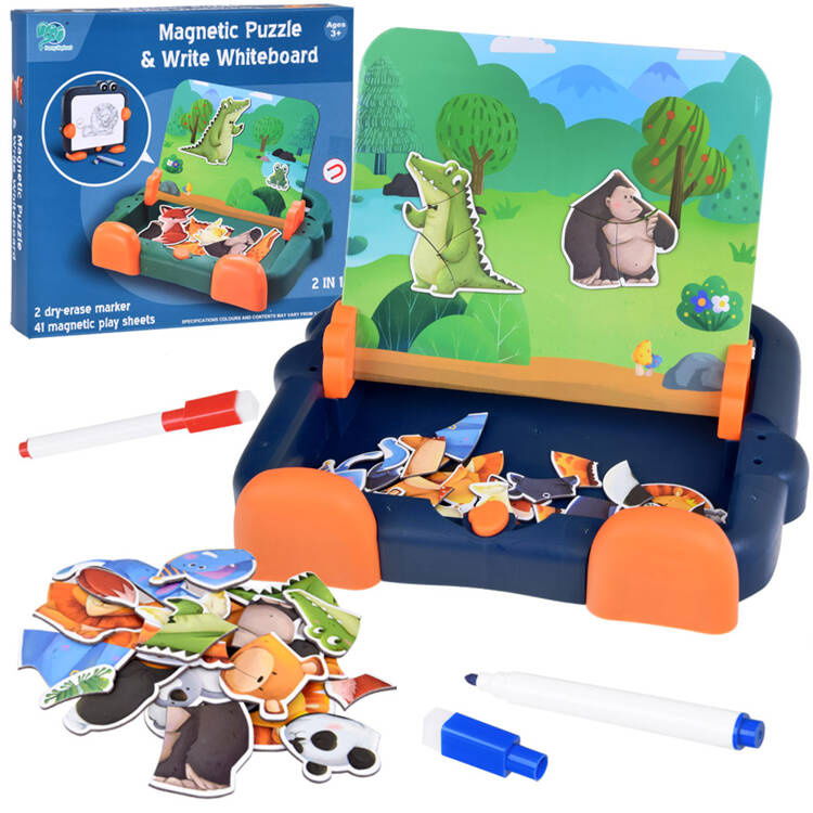 Oto 2w1 tablica magnetyczna, która zachwyci każde dziecko! Zestaw zawiera 41 magnetycznych puzzli przedstawiających urocze zwierzątka, pisaki do rysowania, a także tablicę, na której można odwzorować ulubione motywy. Całość zapakowana jest w praktyczne plastikowe opakowanie, które można ozdobić naklejkami i zabrać ze sobą wszędzie. Dzięki tej zabawce dzieci rozwijają kreatywność, motorykę małą, wyobraźnię oraz umiejętności grafomotoryczne. Idealna jako prezent dla maluchów, doskonała także dla przedszkoli i ośrodków terapeutycznych. Sprawdź ten kreatywny zestaw w sklepie Jokomisiada i zaskocz swoje dziecko niezapomnianą zabawą!