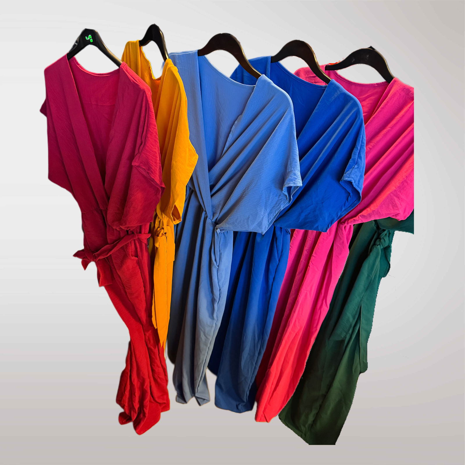 Dlaczego warto? - Kopertowy dekolt wysmuklający sylwetkę - Zwiewny, przewiewny materiał na lato - Gumka w talii zapewniająca idealne dopasowanie