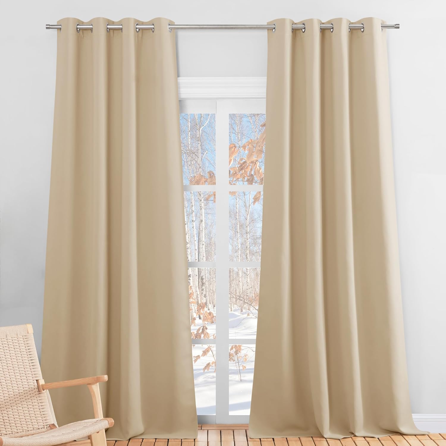 Rozmiar: zestaw zasłon zaciemniających z oczkami zawiera 2 zasłony, każda o wymiarach 140 cm x 260 cm. Długość zasłony jest mierzona od górnej krawędzi pierścienia. Aby uzyskać dobry efekt, zasłona musi być 1,5-2,6 razy szersza niż okno.