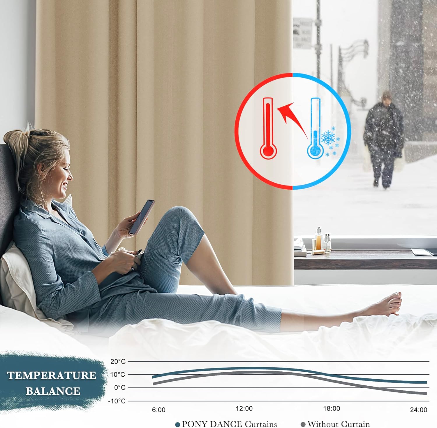Inteligentna oszczędność: właściwości termiczne zasłon sprawiają, że jest ciepło zimą i chłodno latem. Oszczędzaj na kosztach ogrzewania i klimatyzacji oraz chroń swoje meble przed przebarwieniami.