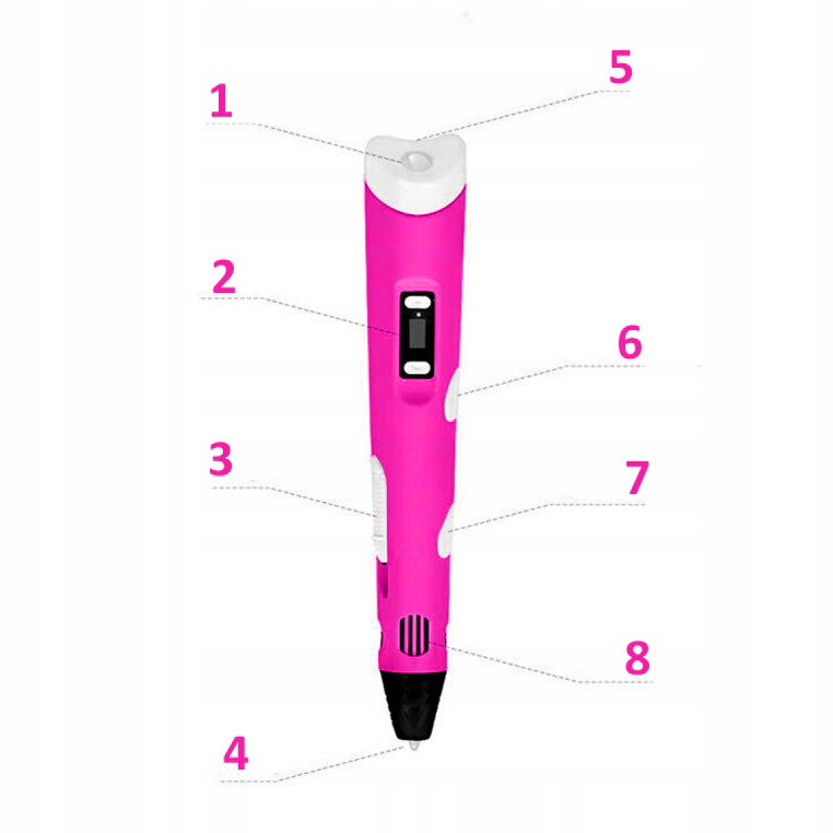 - Długopis 3D pozwala na kontrolowanie prędkości wypuszczania plastiku, co pozwala na precyzyjne rysowanie i kontrolowanie ilości używanego materiału.