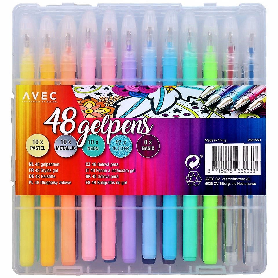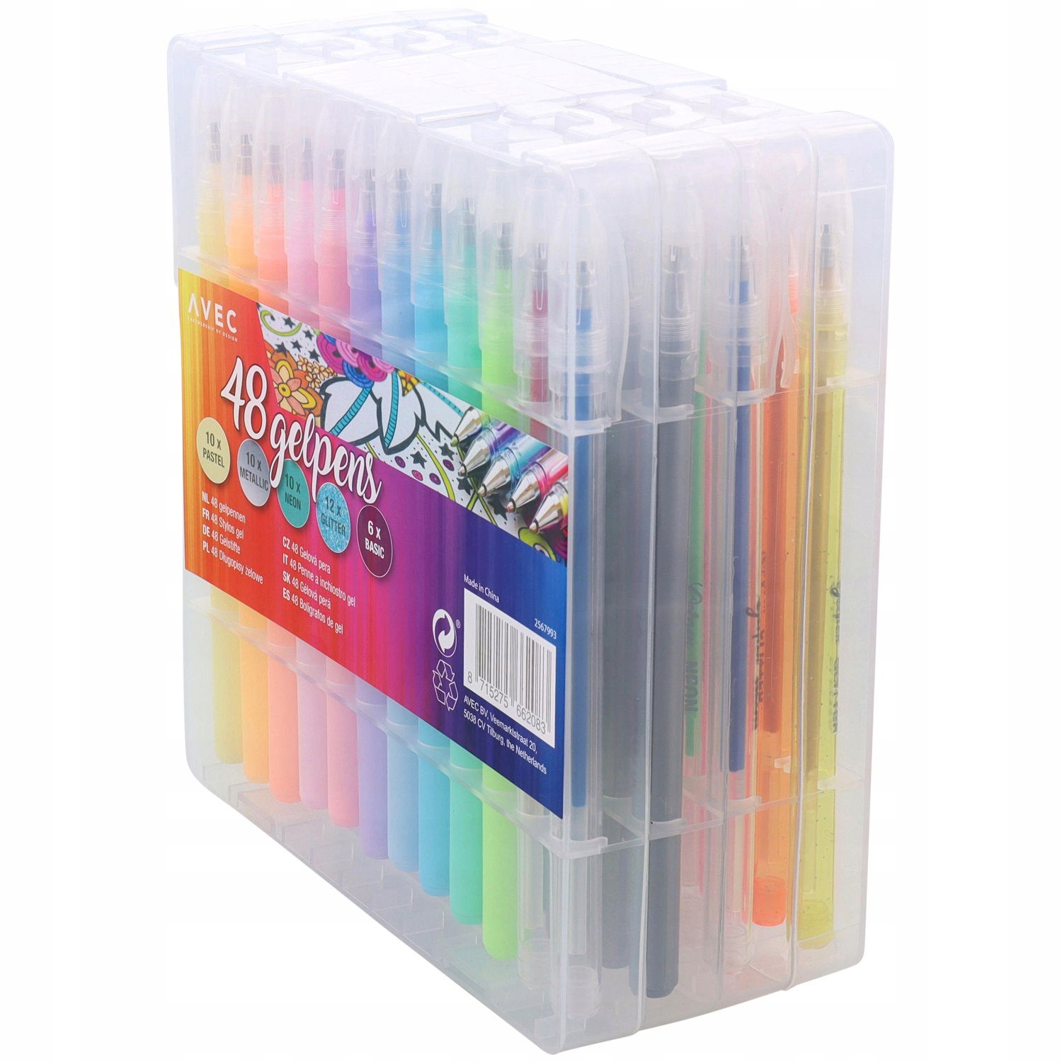 DŁUGOPISY ŻELOWE MEGA DUŻY ZESTAW 48 sztuk PASTELE METALICZNE NEONY BASIC Y