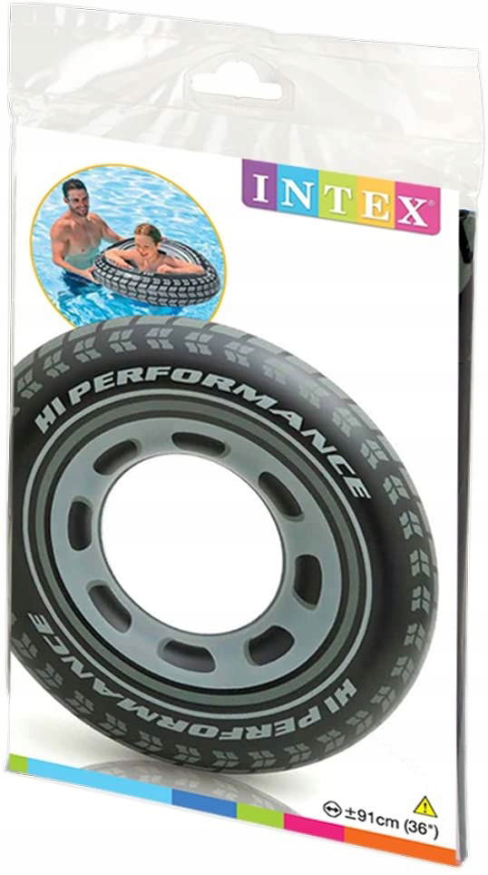 Dmuchane koło ratunkowe INTEX Opona 91 cm Pławanie basen jezioro CZARNE