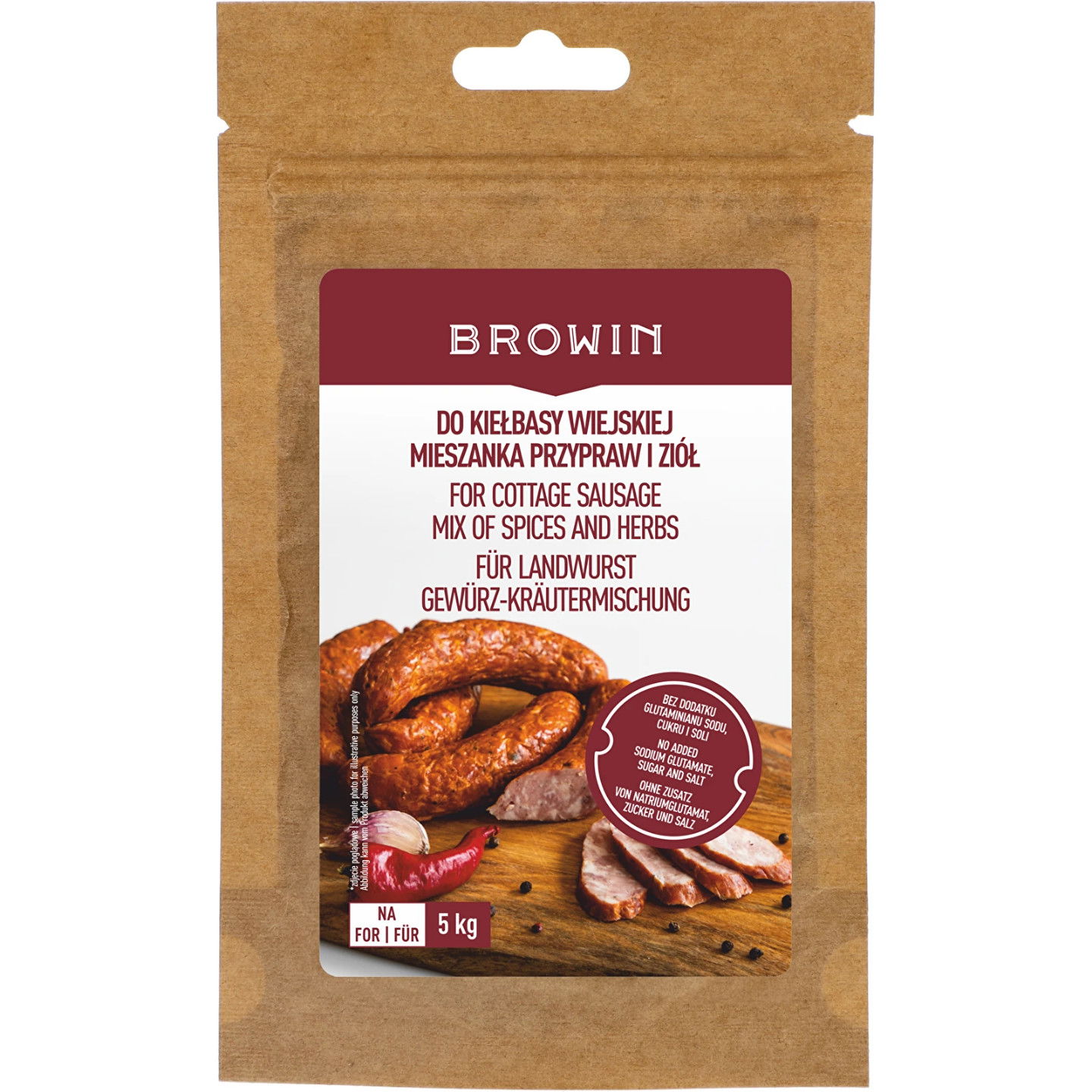 - Wydajne opakowanie - jedna saszetka o gramaturze 20 g wystarcza na przygotowanie 5 kg kiełbasy! Bez problemu przygotujesz więc wyrób na święta lub spotkanie przy grillu w większym gronie przyjaciół!
