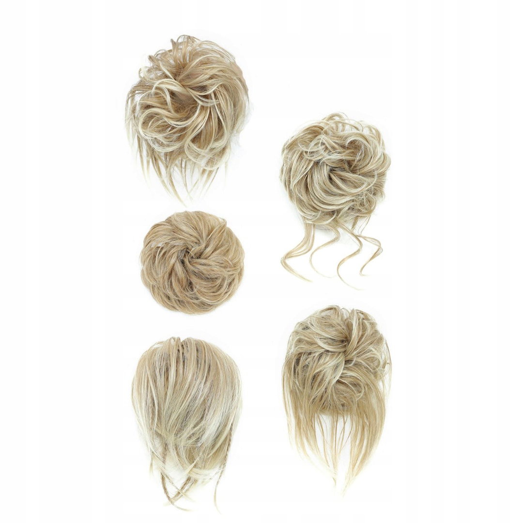 Doczepiany KOK na gumce treska GĘSTY koczek messy bun 5 szt. BLOND
