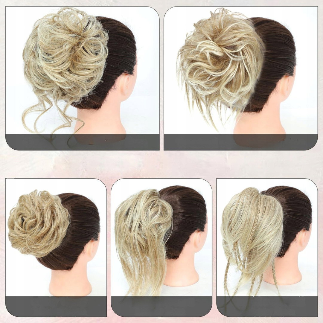 - Na różne okazje: kręcony kok typu messy bun pozwala zmienić fryzurę w kilka sekund i sprawdzi się na imprezach, tańcu, zakupach, jodze, weselu oraz na co dzień.
