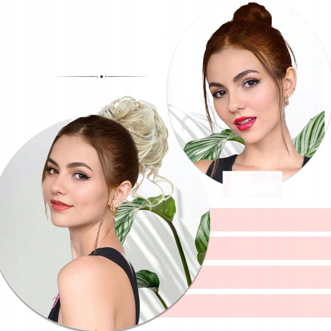 - Zastosowanie: falowana dopinka messy bun służy do szybkiego upinania włosów w koki, półupięcia oraz luźne stylizacje na co dzień i na specjalne okazje. Wykorzystywana jest do zwiększenia objętości cienkich włosów, maskowania krótszych pasm oraz uzyskania efektu pełniejszej fryzury bez użycia ciepła czy skomplikowanych akcesoriów fryzjerskich. Sprawdza się podczas przygotowań do pracy, spotkań, sesji zdjęciowych czy wyjść wieczorowych, kiedy potrzebne jest szybkie i estetyczne upięcie włosów.