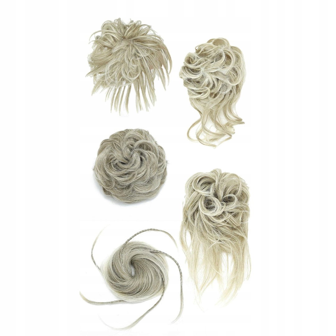 Doczepiany KOK na gumce treska GĘSTY koczek messy bun 5 szt. BLOND