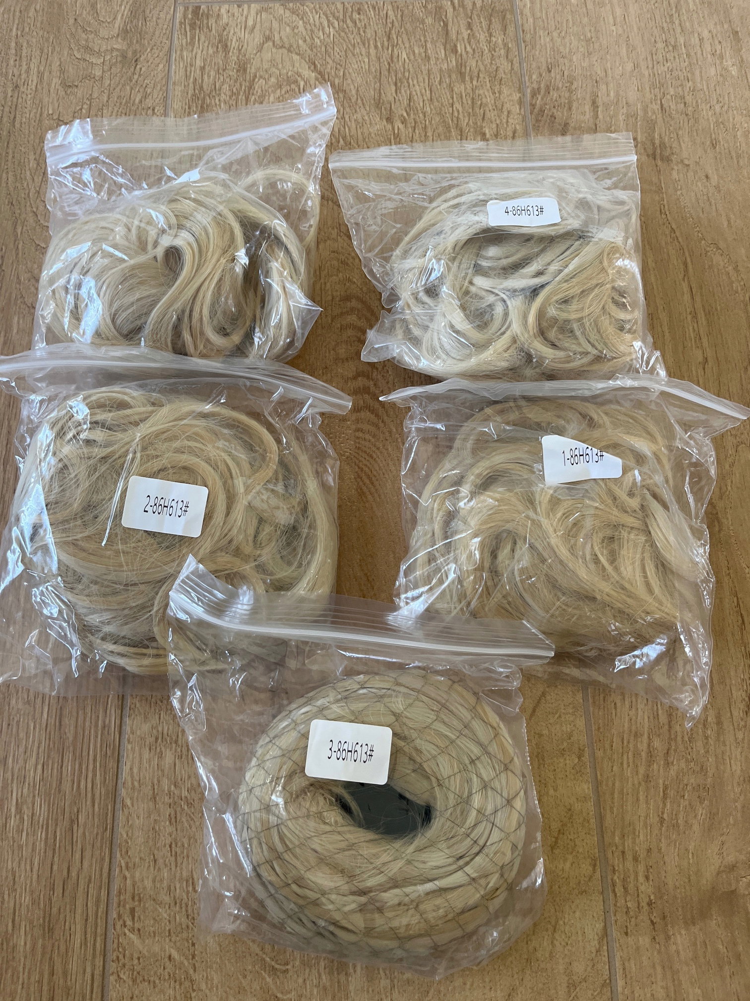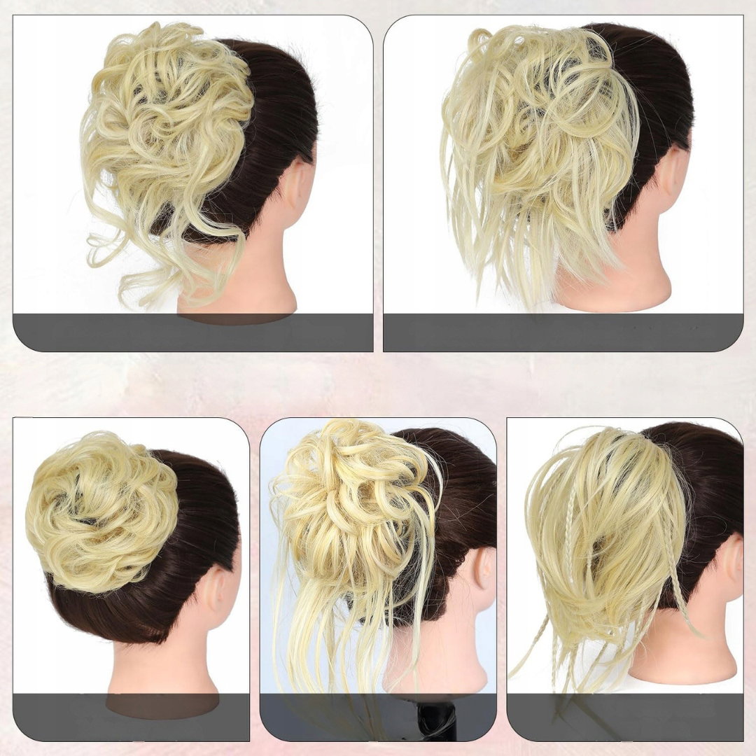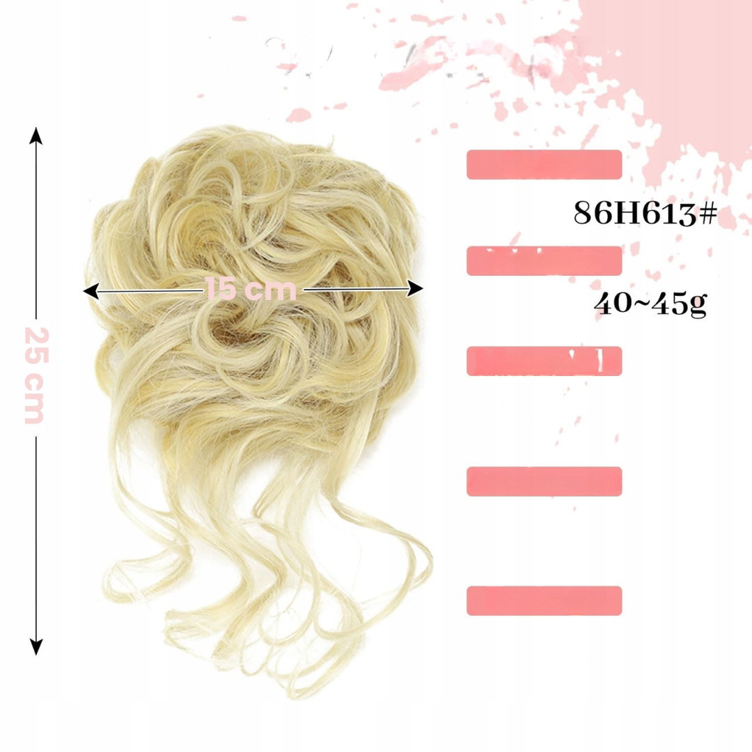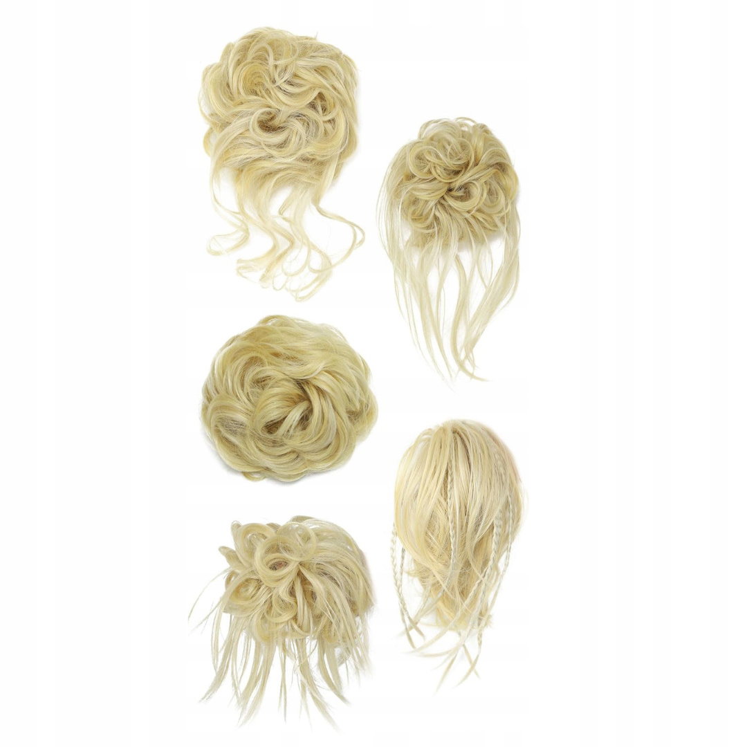 Doczepiany KOK na gumce treska GĘSTY koczek messy bun 5 szt. BLOND