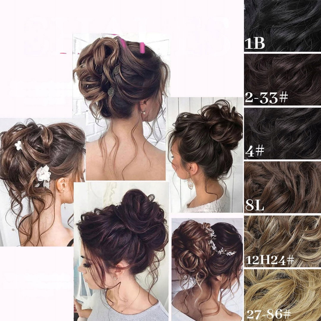Zestaw 5 dopinek do włosów z elastyczną gumką, duży kok, falowana naturalnie wyglądająca syntetyczna gumka do włosów, damskie dopinki do upięć i koków, messy bun dla kobiet i dziewcząt do kucyka.