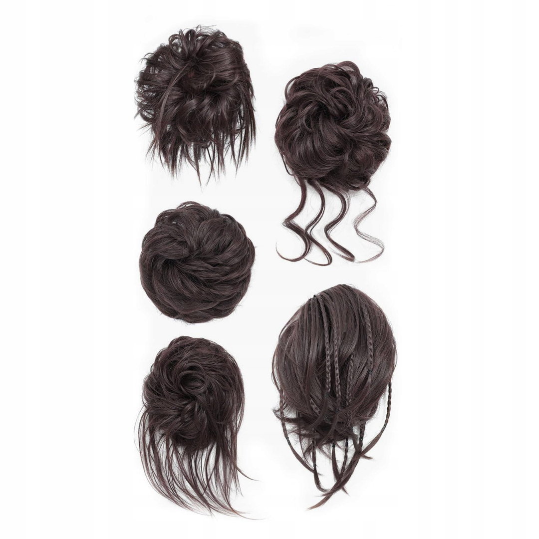 Doczepiany KOK na gumce treska GĘSTY koczek messy bun 5 szt. Ciemny Brąz