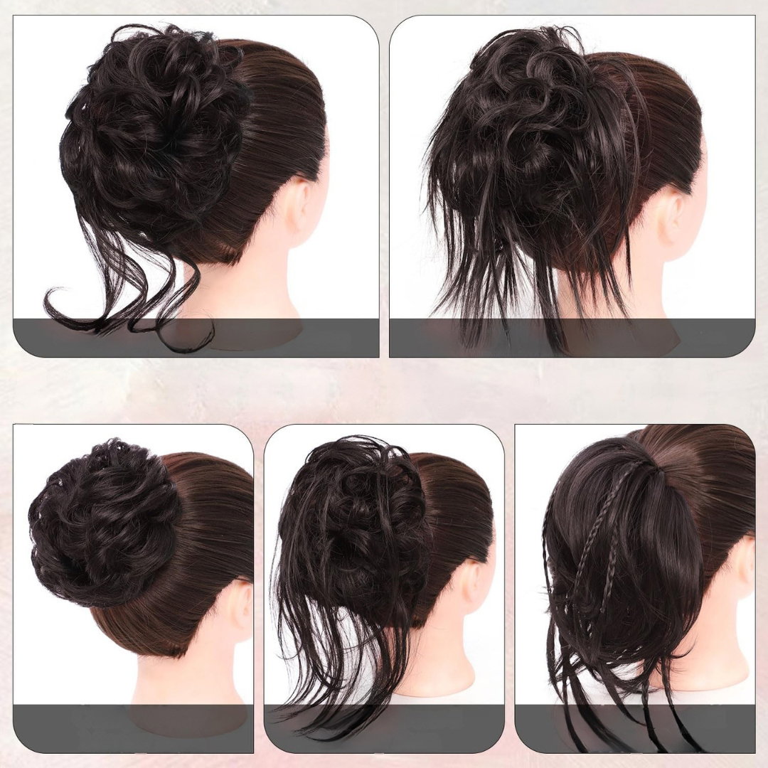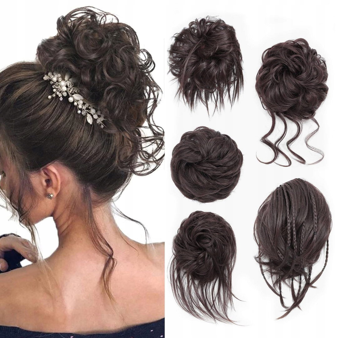 Zestaw 5 dopinek do włosów z elastyczną gumką, duży kok, falowana naturalnie wyglądająca syntetyczna gumka do włosów, damskie dopinki do upięć i koków, messy bun dla kobiet i dziewcząt do kucyka.