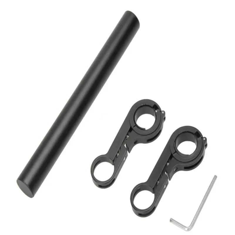 Montaż uchwytu jest bardzo prosty i szybki, z czym bez problemu poradzi sobie każdy. Dzięki podwójnemu uchwytowi takie przedłużenie kierownicy trzyma się ramy stabilnie i nie chybocze się na boki. Specyfikacja techniczna:
