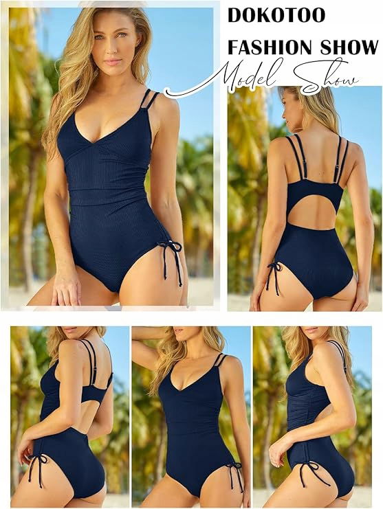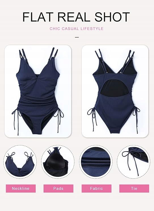 Stylowy kostium kąpielowy, trójkątne kosze, regulowane ramiączka spaghetti, seksowny krój bez pleców, marszczenie na brzuchu zapewnia skuteczną magię płaskiego brzucha.