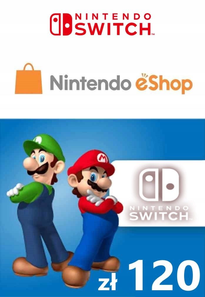 Kod zasila konto Nintendo eShop kwotą 120 zł, umożliwiając wygodne zakupy cyfrowej zawartości na Nintendo Switch.