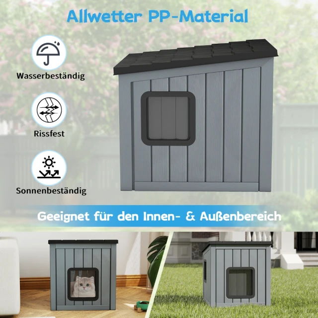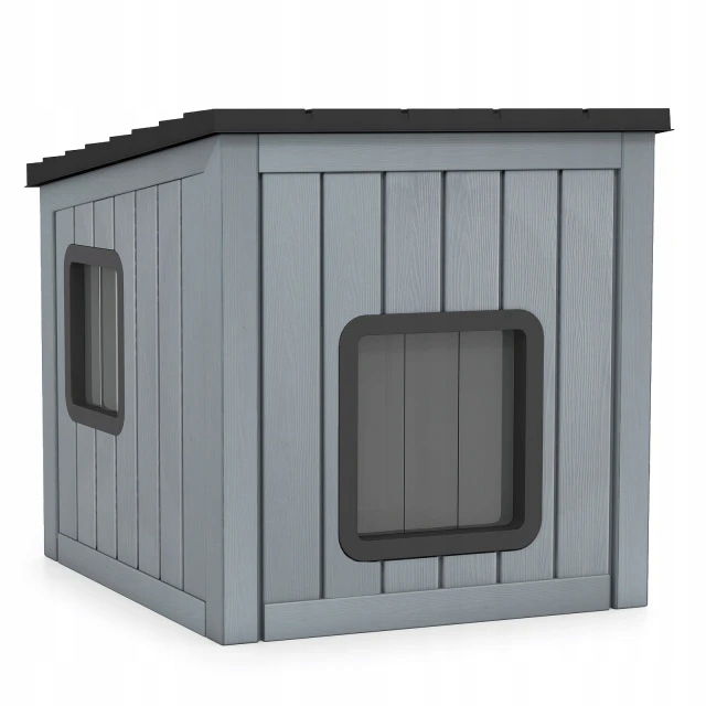 Odkryj odporny na warunki atmosferyczne domek dla zwierząt, wykonany z materiału PP, który jest odporny na zużycie słońca i przebarwienia. Jej pochylony zadaszenie zapewnia odpływ wody, natomiast otwory odpływowe zapobiegają gromadzeniu się wody wewnątrz.