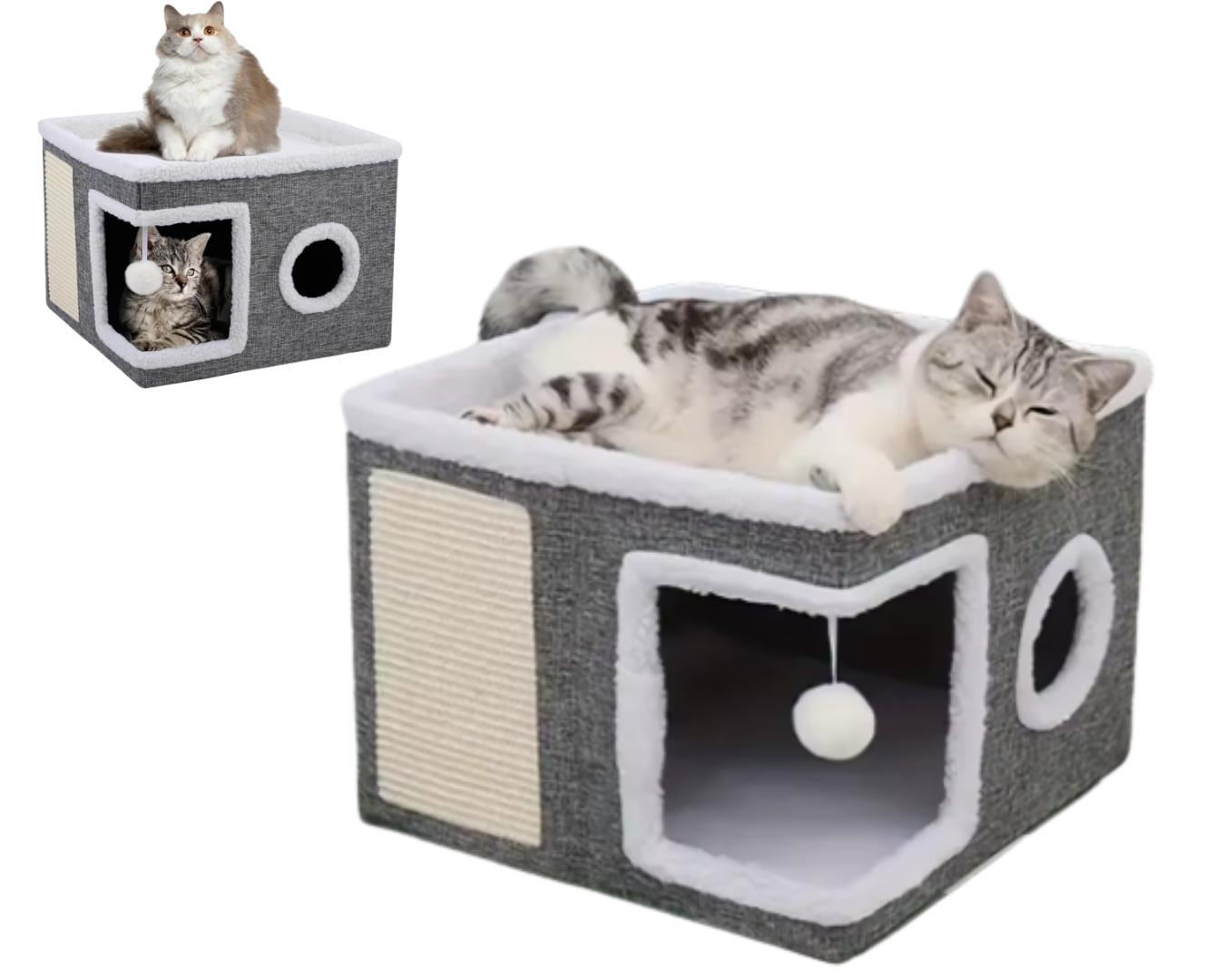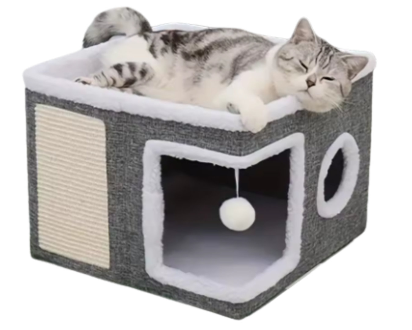 DOMEK DLA KOTA 2W1 – LEGOWISKO, DRAPAK I BUDKA (SZARY)