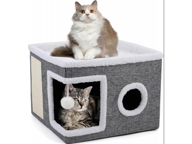 Domek Dla Kota Legowisko Drapak Skaładany Budka Piłeczka 2W1 Szary