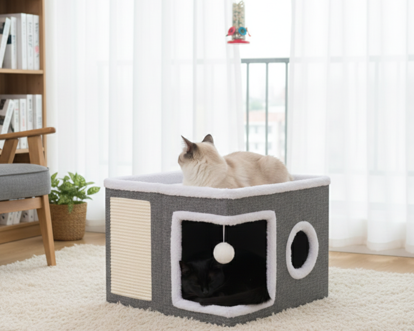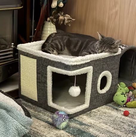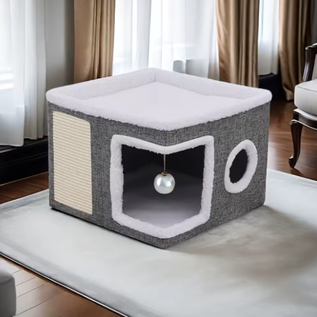 Szukasz mebla, który połączy pasję Twojego kota do drapania z miłością do długich drzemek? Nasz składany domek 2w1 to stylowe rozwiązanie, które oszczędza miejsce w mieszkaniu, jednocześnie dbając o wszystkie naturalne potrzeby Twojego mruczka.