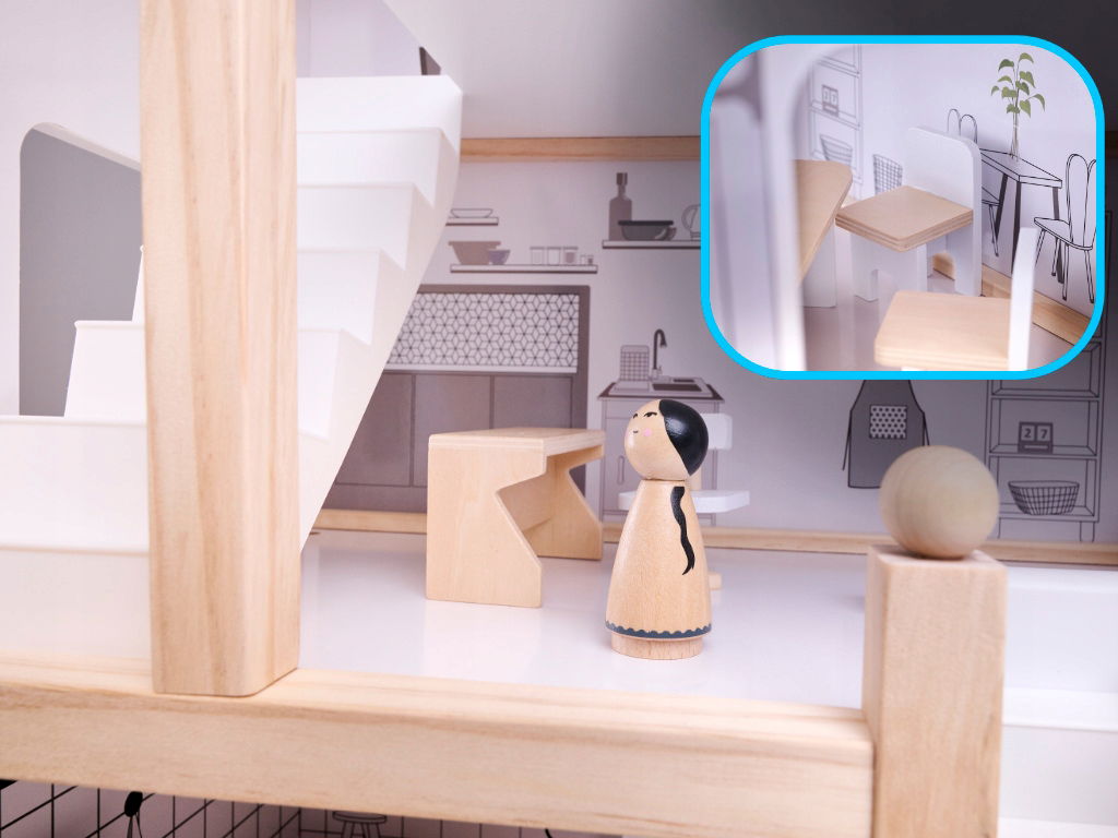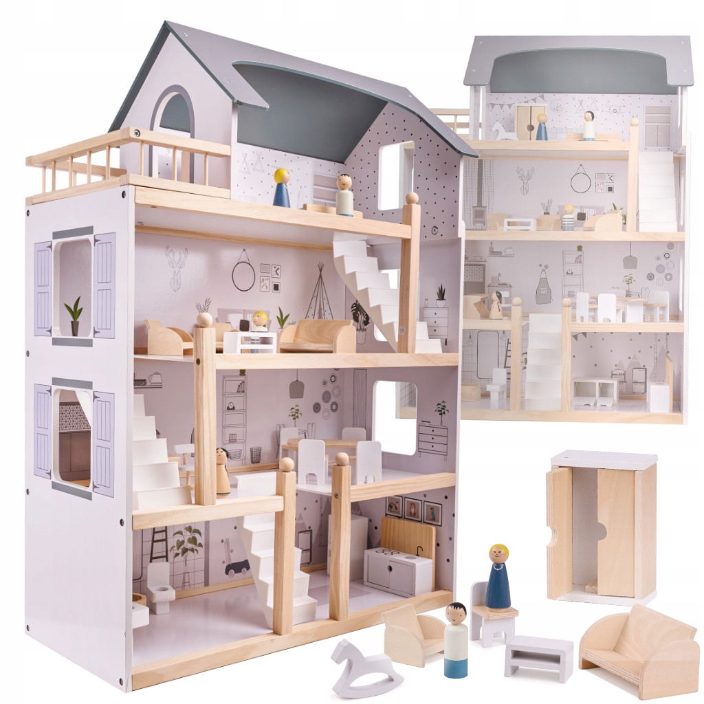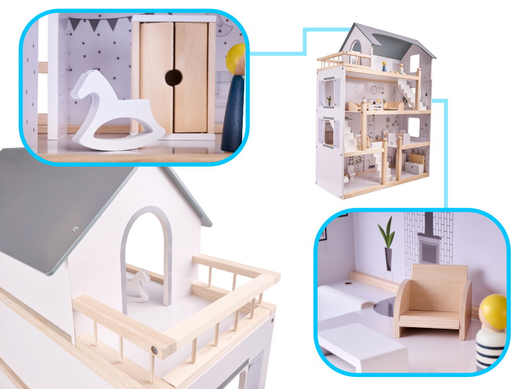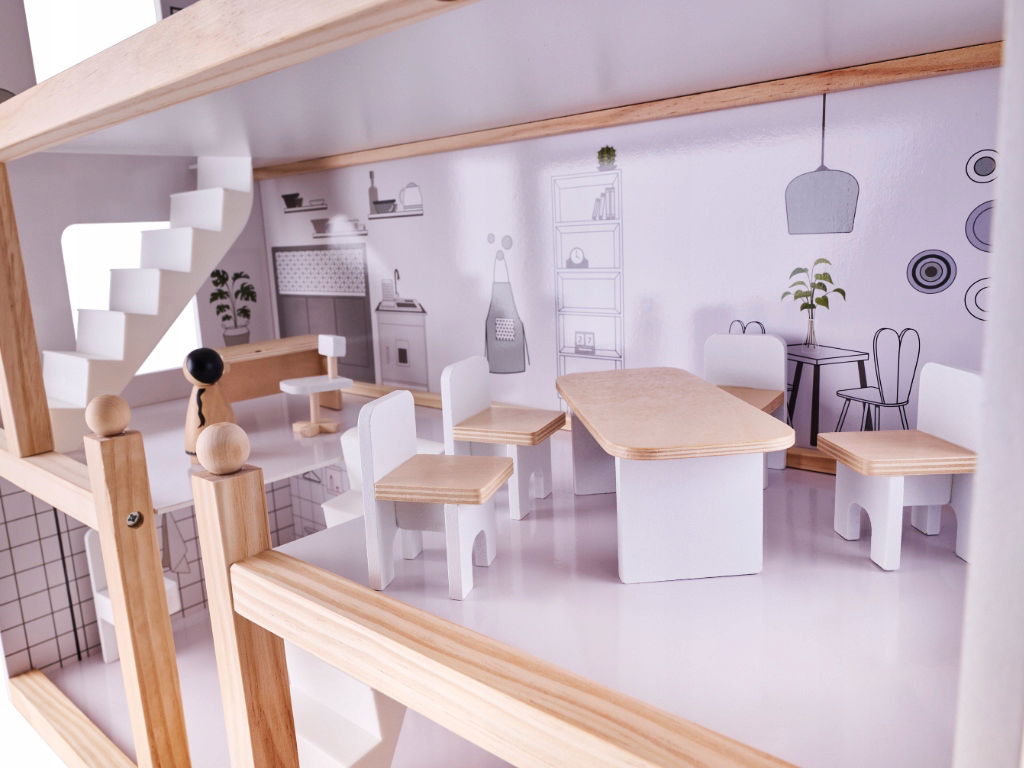Drewniany domek dla lalek został wykonany z niezwykłą starannością i dbałością o szczegóły, dzięki czemu przyciągnie uwagę nie tylko Twojej pociechy, ale również Twoją i odwiedzających was osób!