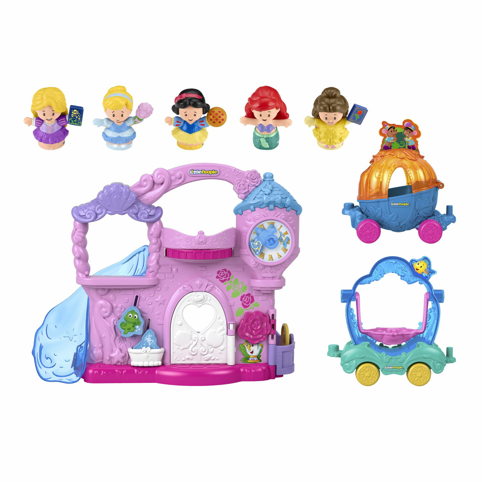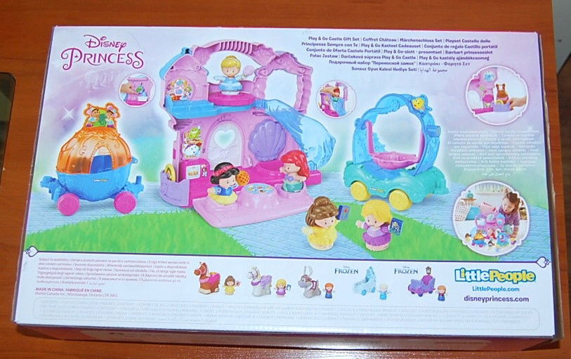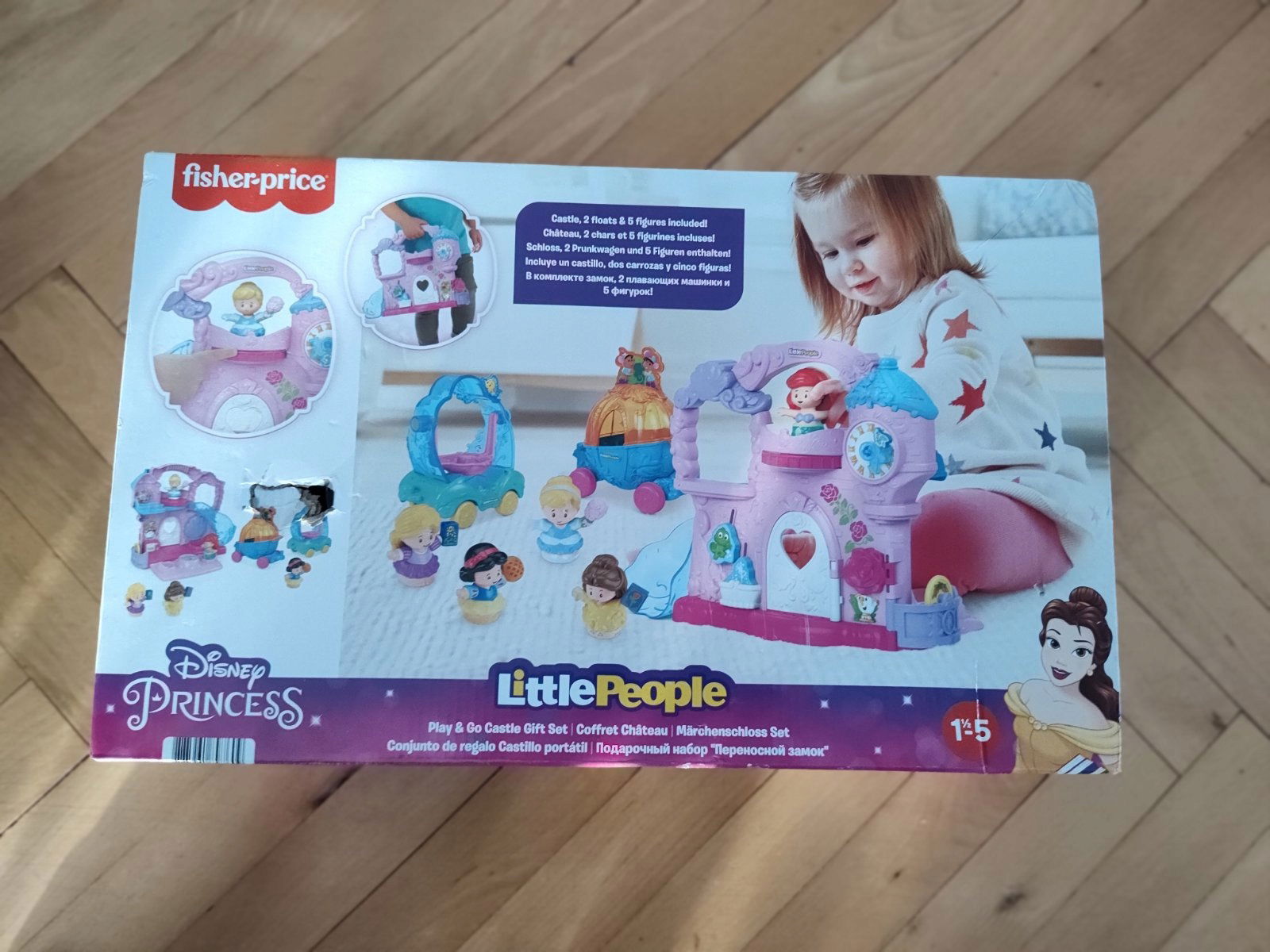 Zawartość: 1 x zestaw do zabawy i zabawy w zamku, 5 x figurki postaci księżniczek Disneya i 2 x popychane pojazdy