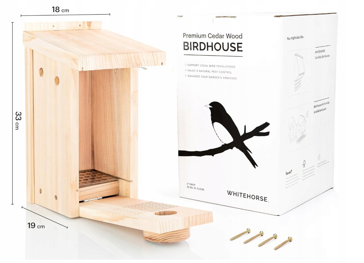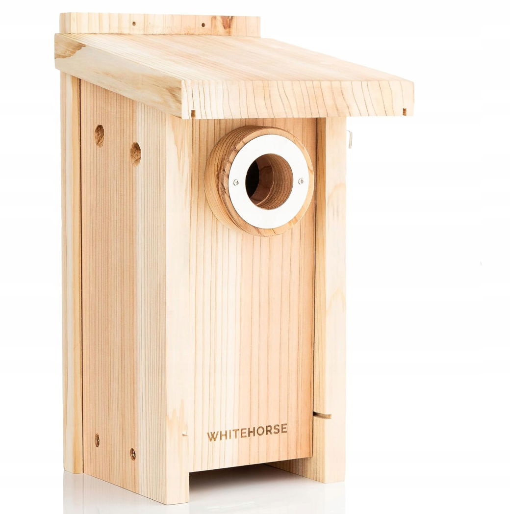- ✴️SOLIDNIE WYKONANY – Wykonany z litego drewna cedrowego o grubości 1,9 cm. Otwór wejściowy chroniony jest osłoną ze stali nierdzewnej. Drewniana osłona o grubości 2,5 cm chroni przed drapieżnikami.