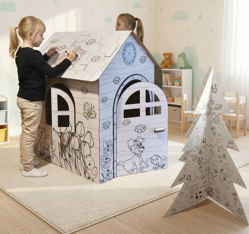 Domek Kartonowy dla Dzieci do Malowania Kolorowanka + Choinka GRATIS !!!