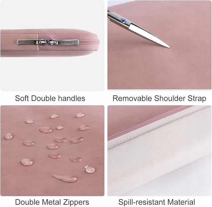Wybrane materiały: Torba na laptopa wykonana jest z wodoodpornej i odpornej na zachlapanie tkaniny - nie musisz się martwić, że Twój laptop zmoknie przez rozpryski lub deszcz; wyściółka wewnętrzna to miękki polar, który chroni laptopa przed kurzem, brudem i zadrapaniami oraz wypadkami.