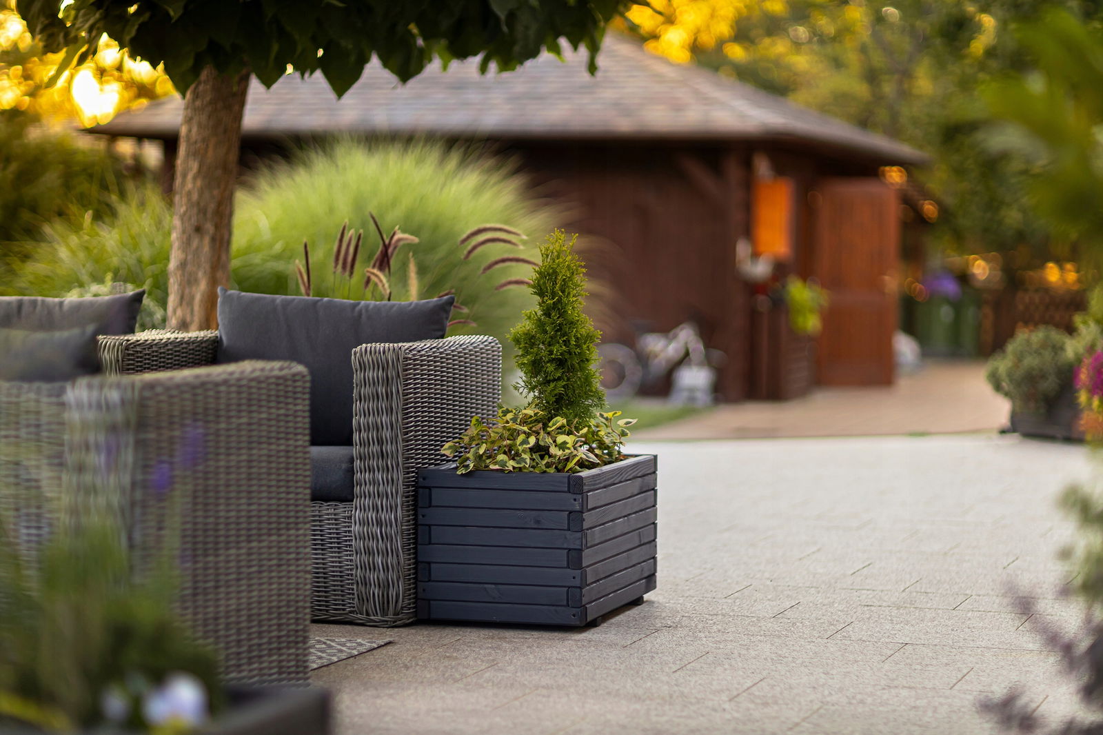 Solidność i styl w Twoim ogrodzie – Donica Drewniana Sosnowa Antracytowa Graphia 100x40x40cm Grubość 3.5cm Wersja złożona