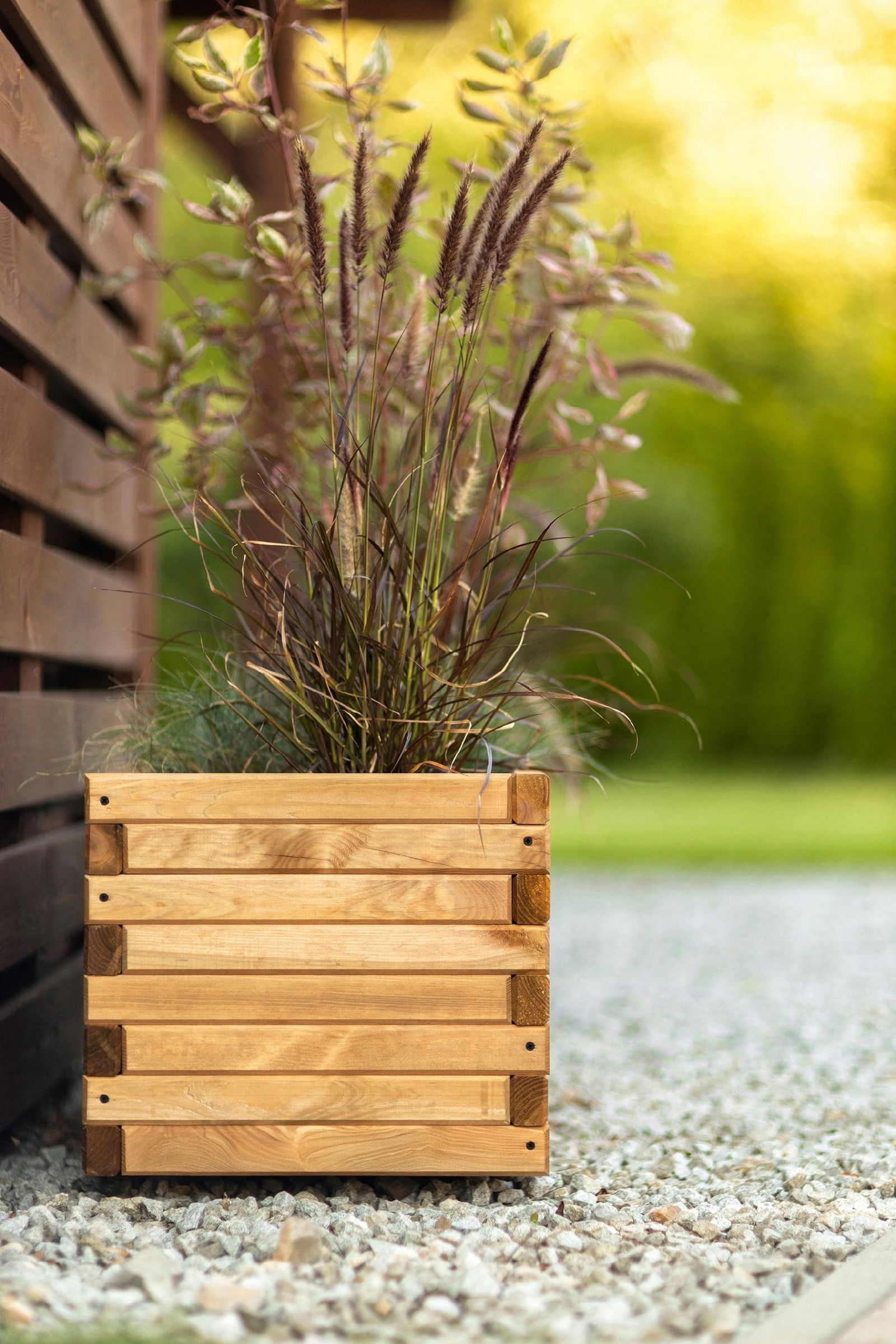Solidność i styl w Twoim ogrodzie – Donica Drewniana Sosnowa Brązowa Terra 120x40x40cm Grubość 3.5cm Wersja złożona