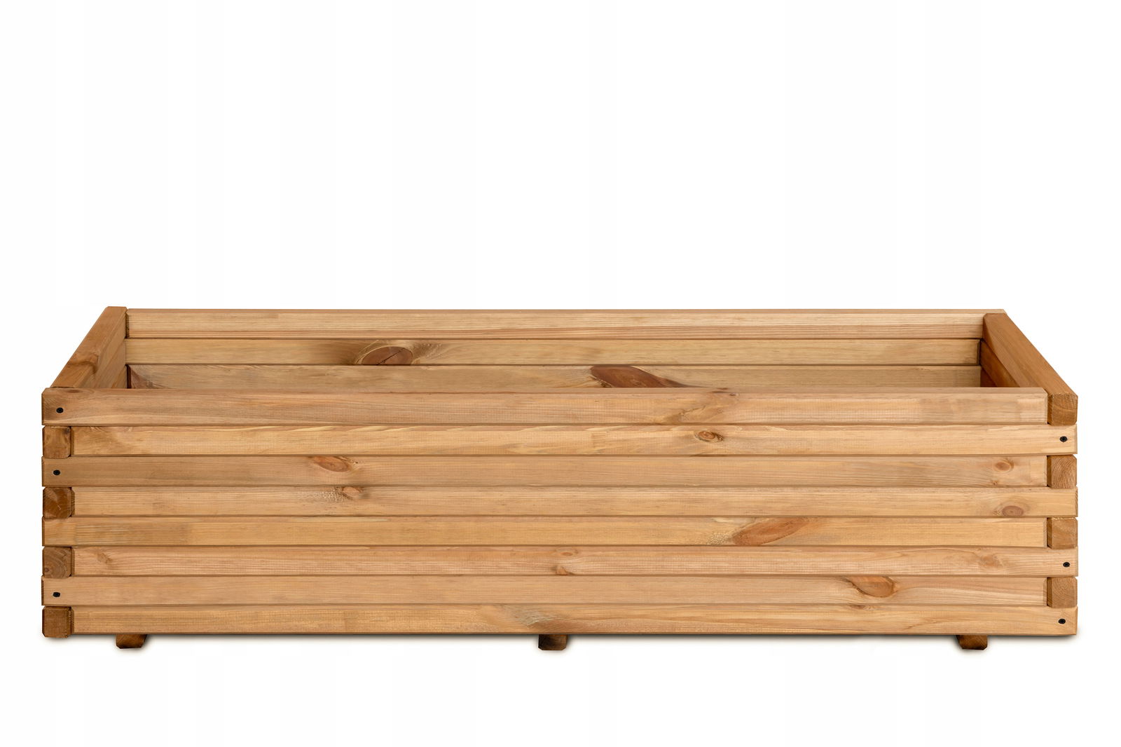 - Grubość, Która Robi Różnicę: Ściany donicy wykonane są z imponujących desek o grubości 3,5 cm. To nie są cienkie listewki – to solidna, stabilna konstrukcja, która zapewnia donicy wyjątkową trwałość i odporność na odkształcenia oraz warunki atmosferyczne.