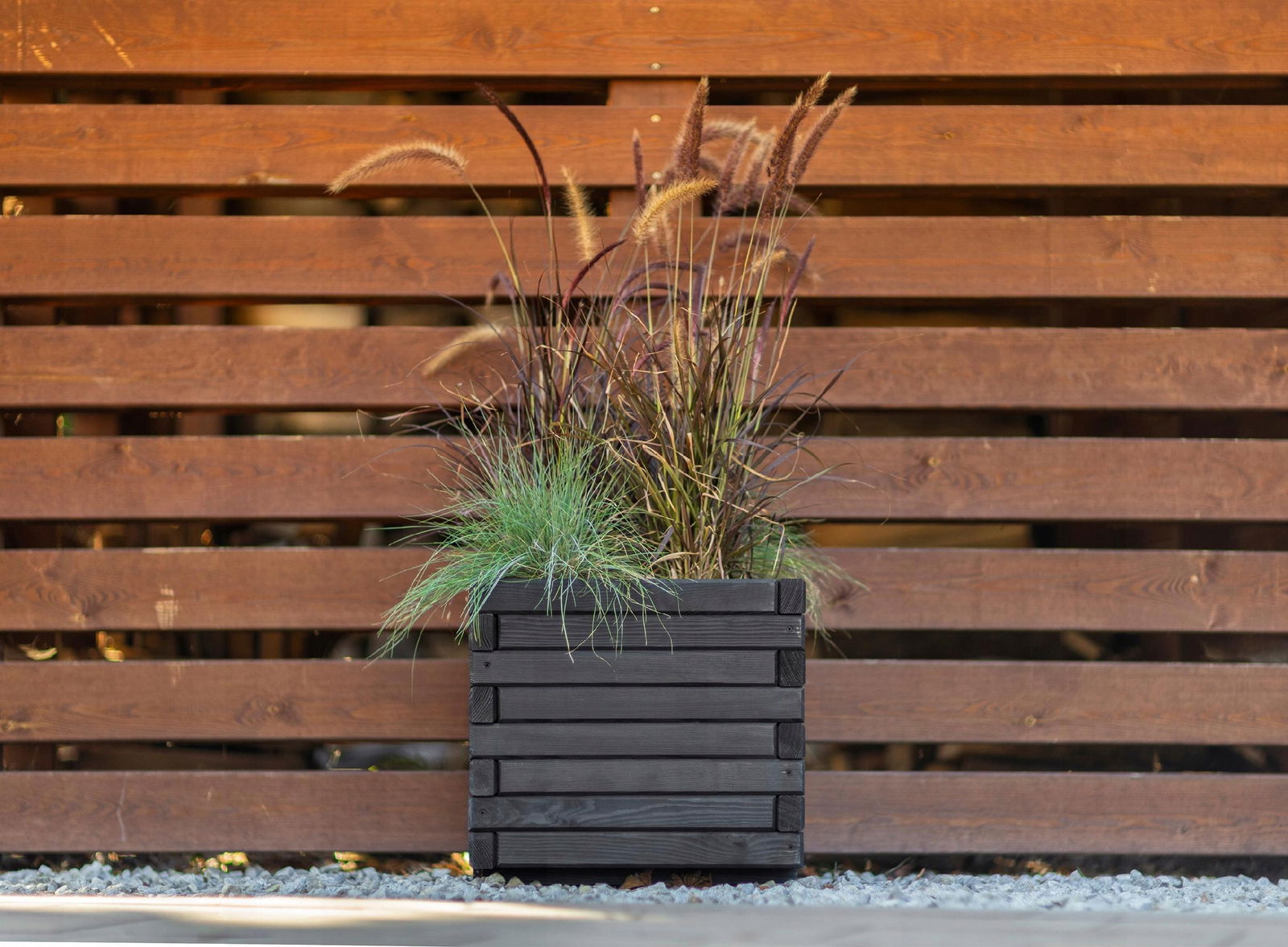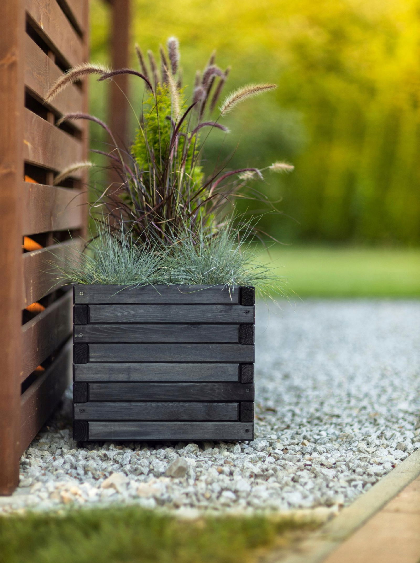 Solidność i styl w Twoim ogrodzie – Donica Drewniana Sosnowa Czarna Flora 40x40x40cm Grubość 3.5cm Wersja złożona