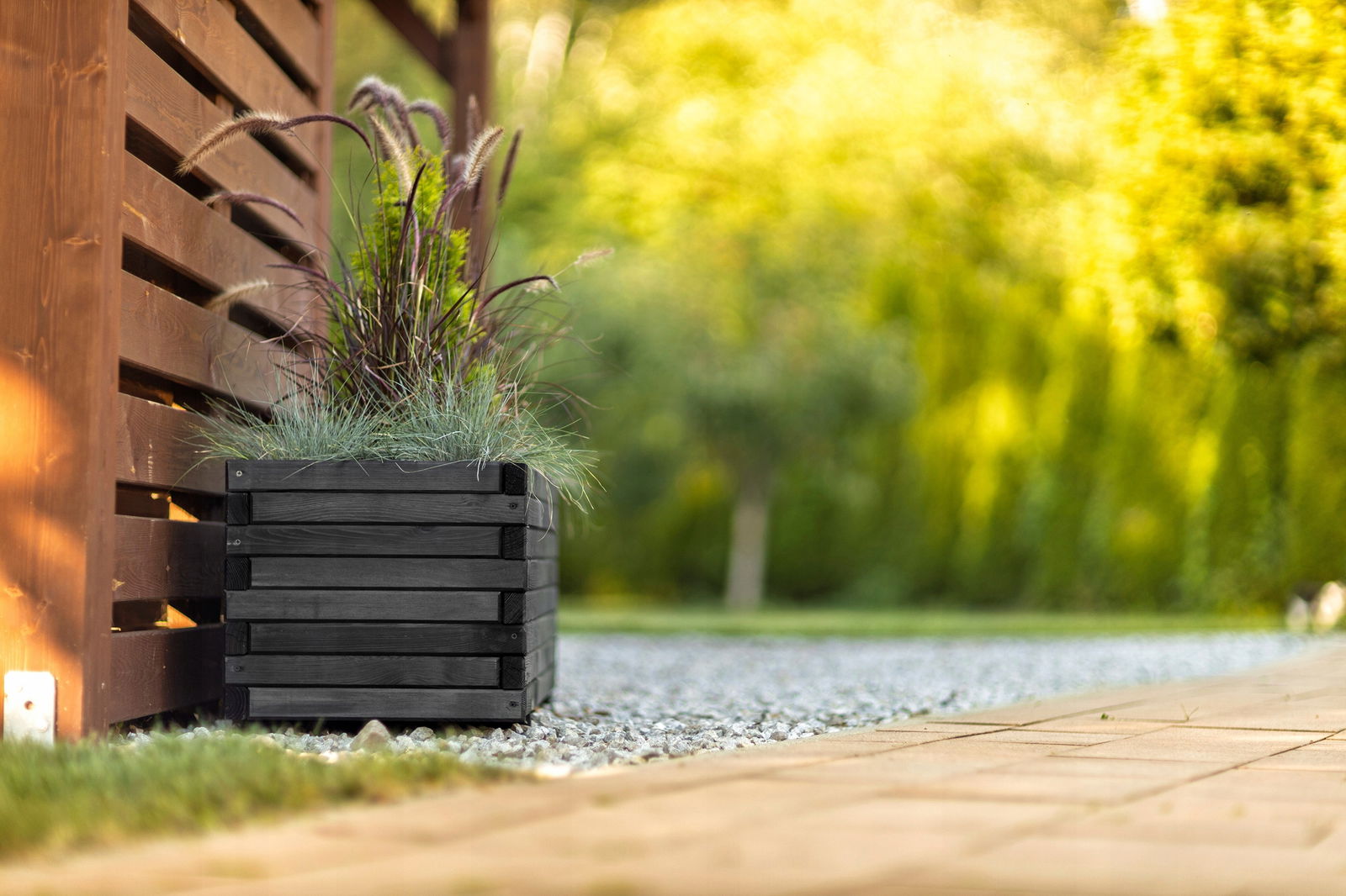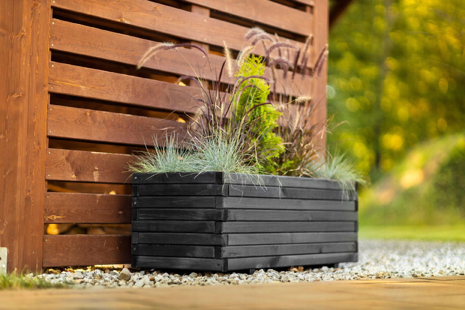 Solidność i styl w Twoim ogrodzie – Donica Drewniana Sosnowa Czarna Flora 90x40x40cm Grubość 3.5cm Wersja złożona